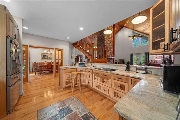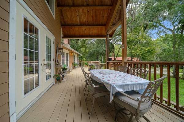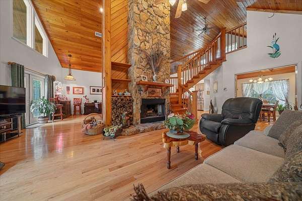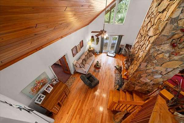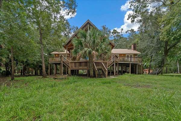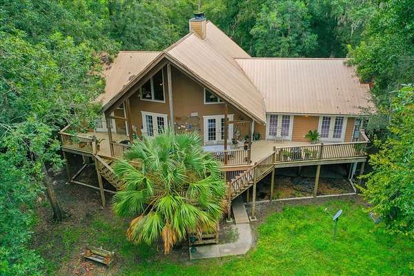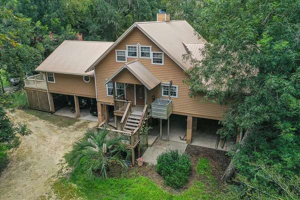 "Midst moss-hung live oaks and cypress trees, and songs of birds, the drive is begun. Its beauty could never be imagined or dreamed of by driving along a paved highway. Beautiful holly groves, tupelo, magnolia, and wildflowers are along the way, and suddenly it opens up to the romantic Suwannee River! Flowing silently, it holds many secrets of the past... the secrets of Jungle Drive." Words once published about this very property. Welcome to a one-of-a-kind masterpiece on the banks of the Suwannee River in Old Town, Florida -- the work of a true craftsman contractor. Tucked away on over 2 acres of land once part of the Suwannee River Jungle Drive of the 1950s, this nearly 2,300 sq ft home is surrounded by natural landscaping, towering cypress trees, and abundant wildlife. As the driveway winds through the scenery, it opens to reveal a grand riverfront retreat unlike any other. Step inside to discover a brand-new kitchen featuring custom cabinetry, beautiful quartz countertops with warm and cool undertones, and soaring vaulted heart pine ceilings that bring warmth and character. Beyond the kitchen, a striking double-sided fireplace connects the spacious living room with a pool table and bar area -- both opening onto the expansive back porch overlooking the river. The dining room is a true showstopper, with coffered ceilings and pine flooring adding elegance and craftsmanship at every turn. Upstairs, a loft offers sweeping views of the grand living space below. The oversized primary suite is wrapped in stunning pecky cypress and opens to both the back porch and a private deck with river views. The master closet feels like a hidden retreat of its own. On the opposite side of the home, an additional bedroom, full bath, and an oversized laundry room provide comfort and convenience for family and guests. With its unmatched craftsmanship, breathtaking river views, and rich connection to Old Florida history, this home offers not just a place to live -- but a story to be part of. Schedule a showing and make it yours!