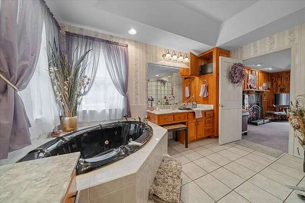 - Blinds, Ceiling Fans, Double Oven, Electric Cook Top, Fireplace, Jet Tub, Laundry/Utility Room, Living Room, w/ Hookups