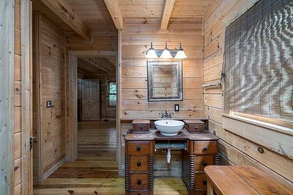 Log home on almost 2 acres in the north GA mountains! Main floor has soaring cathedral ceilings & open concept living with a loft above. There is a stone fireplace & access to the rear deck that overlooks the mountains. Large master bedroom on main. Loft would be a great home office. Lower level has 2 bedrooms, full bath, laundry, & game room with a pool table. Lower deck has a hot tub. Community amenities include multiple pools, multiple picnic areas, basketball & tennis courts, playground & clubhouse with a fitness center. Multiple hiking trails & fishing in the stocked lake or fishing in the creek. Close to Ellijay!
