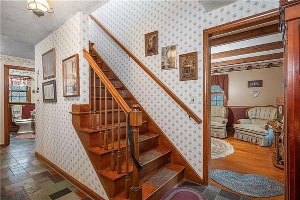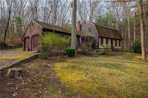 Nestled on two acres this rustic 3-4 bed, 1.5 bath, Dutch Gambrel style Colonial offers nearly 2000 square feet of finished living space with beautiful hard woods and that charming New England country vibe. While the exterior is going to need love, the rest of the interior could certainly be occupied while making potential cosmetic upgrades for buyers that may not have the taste for rustic primitive style. The first floor offers a family room, full eat in kitchen, formal dining room, a half bath, and a den and an office with a closet that could double as a first floor bedroom or guest room if needed. On the second level there are 3 bedrooms, one very generous in size and a full bath. There is an attached two car garage that is insulated with its own zone of heat too! The boiler was replaced 10 years ago and for those who desire living off the land, there is a wood fired boiler still installed with its own chimney flue as well! Located less than a mile from the North Smithfield line, this property also offers the ease of commuting, while getting the peace and quiet of the country! Don't miss!