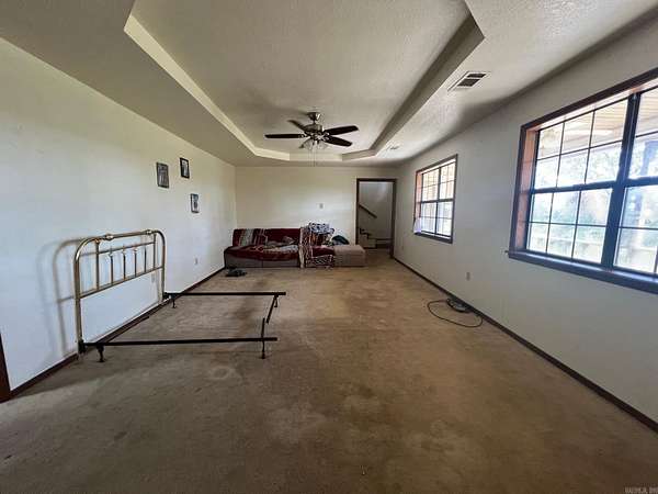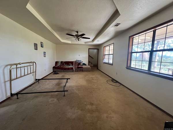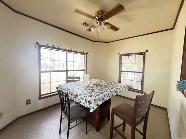 Beautiful 5-bedroom, 2.5-bath home located on the edge of the city limits with a hilltop setting and balcony offering sweeping views. Inside, you'll find trey ceilings, a den, dumbwaiter, HVAC, and a spacious primary ensuite. 3 BR downstairs and 2 up which share a spacious jack and jill bath. The property includes an extended garage, paved drive, two-story newer shop with balcony which could be easily converted into a 2nd home, and multiple outbuildings--perfect for a mini farm lifestyle. Situated in Scott County, this home is surrounded by rich history and recreation, including the largest bluegrass festival this side of the Mississippi- Turkey Track, the oldest working movie theatre-Scott Theatre, three rivers (the Fourche Lafave River, Poteau River and Petit Jean River), four public lakes, and vast national forest and timber lands comprising 77% of the county and offers abundant wild tailed deer, bear, turkey, duck and many other small game varieties. Centrally located to Arkansas's most popular destinations, this property offers both modern comfort and rural charm. Give us a call today for your private showing!