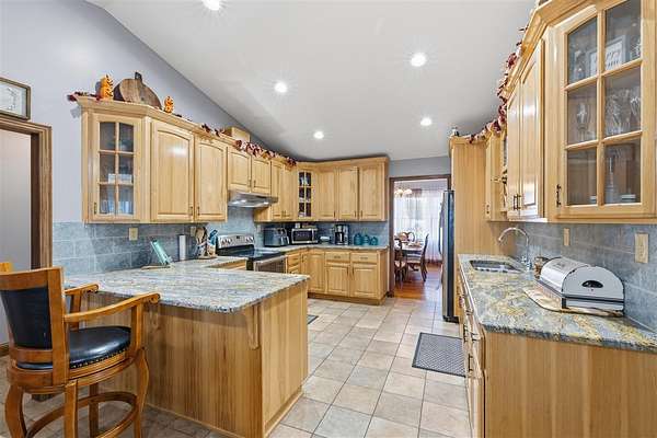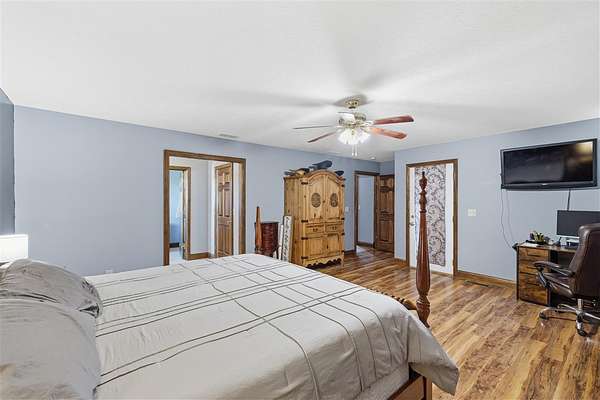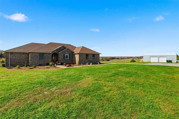 Beautiful Brick Home on 60+- Acres, Shop, Basement & Pond! Spacious 3-bedroom, 3-bath brick home situated on 60+- scenic acres. The home features a full partially finished walkout basement and 10' poured concrete walls, with two additional rooms being used as bedrooms. A 30' x 40' steel-framed shop provides ample room for equipment or hobbies and includes an attached steel-framed greenhouse/plant area and a 24' x 12' dog kennel building. Enjoy relaxing by the pond and taking in the peaceful surroundings. This property offers outstanding potential for hunting, homesteading, or livestock grazing. With its combination of quality construction and versatile acreage, this is truly a must-see property!