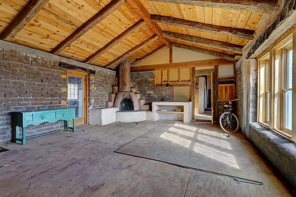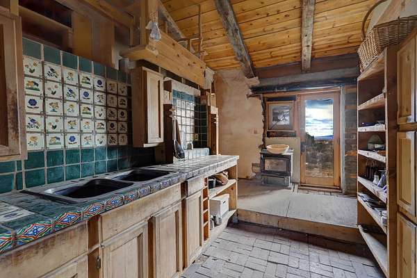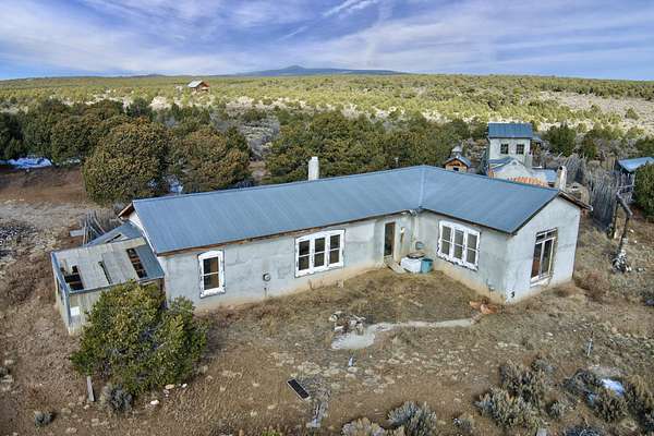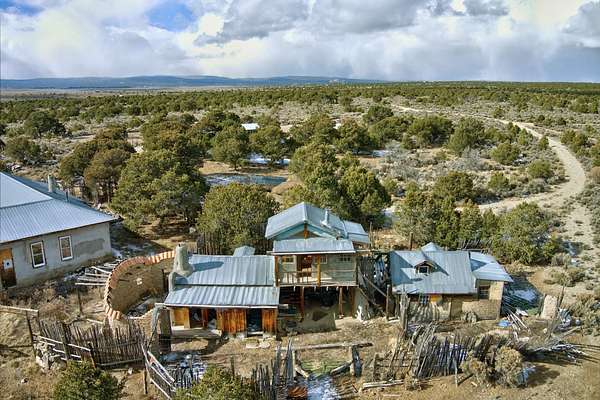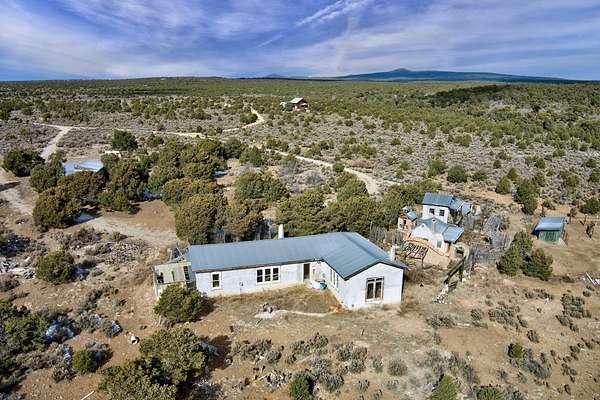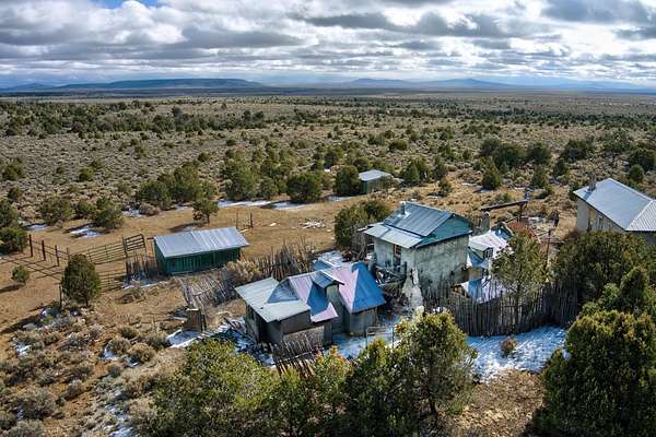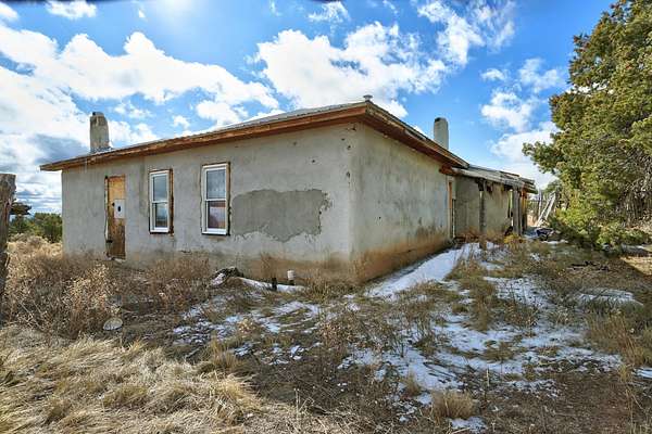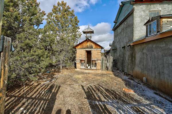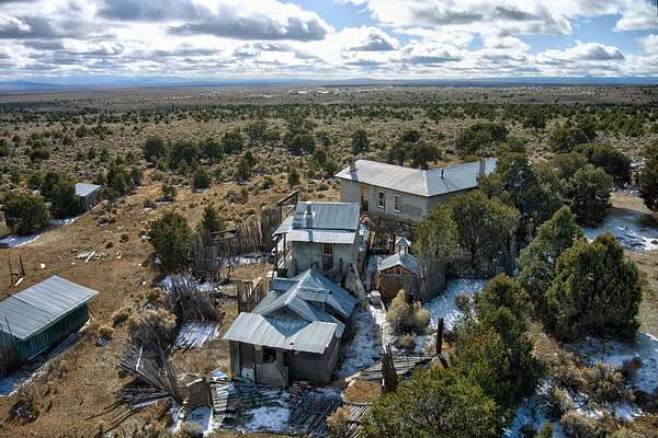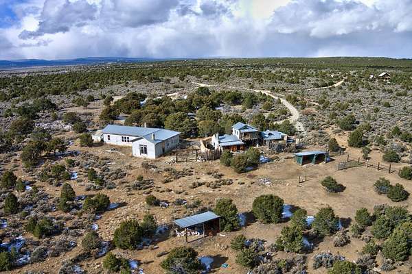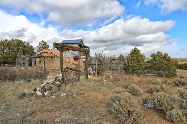 Welcome to Flying F Ranch, a rare 288.59-acre property where Southwestern charm meets sustainable living. With unobstructed views stretching 35 miles, this one-of-a-kind ranch is a rugged sanctuary awaiting your creative vision. Two primary residences provide plenty of space for everyone. Enjoy unmatched views from the second-floor primary suite and spacious covered balcony of the 2-bedroom, 1.5bath chalet. The classic adobe home features a sunken living room 2 Carmen Velarde fireplaces, a wood stove, and a galley kitchen with custom tile countertops and backsplash and brick flooring. Outbuildings include a 2-room cabin, your own turn of the century adobe chapel, two hay barns, a workshop, garage and more. Plenty of space to roam, raise, or ride. We'll provide the bones and bling, you bring your imagination. Whether you're seeking a retreat, a working ranch, or an inspiring canvas for your dreams, Flying F Ranch is an offering unlike any other. A place of wild, panoramic freedom, where sunrises and starlit skies become daily rituals.