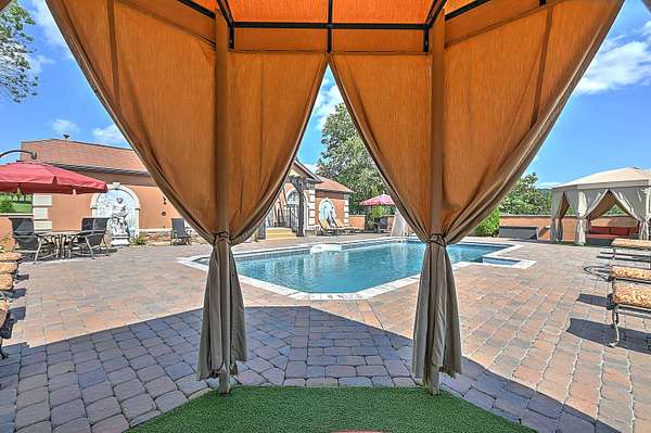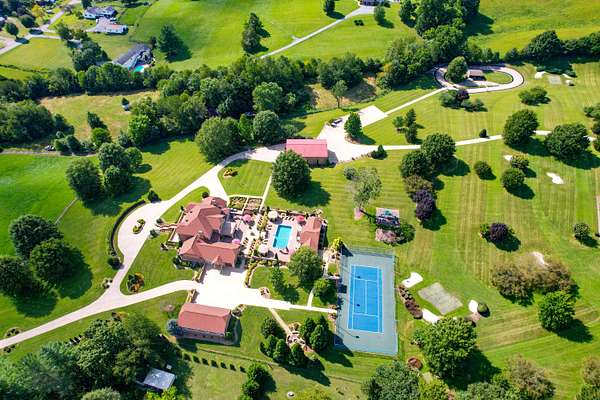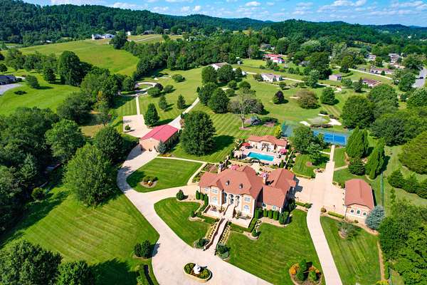 You haven't missed your chance! Back on the market no fault of Seller. Buyer's home sale contingency expired. Now is your opportunity to own an Exclusive Mediterranean estate! It is a truly special home where no details have been overlooked and everything is clad in beautiful Mediterranean and Modern Tuscan style. When you enter the soaring entry, the first thing you notice is all the natural light flooding in from the floor to ceiling windows. The foyer is flanked with dual L-Shaped staircases that evoke splendor right away. The foyer gives way to one of the formal dining rooms, the tailored office full of built-ins and the main formal living space. The rest of the main level consists of a gorgeous chef's kitchen with a large center island, high-end cabinetry, oversized gas range with oven, pastry oven and professional hood. There is also an extra convection oven and microwave. Off the kitchen is an amazing walk-in pantry, huge laundry room and a gathering room with fireplace that could double as the eat-in area. There is also an enormous den with a floor to ceiling stone fireplace off the kitchen. The other formal dining room is also accessible from the kitchen. Entertaining in this layout is a breeze. The spacious primary suite is also on the main level. It has a fireplace, sitting room, with built-in beverage fridge and sink along with an enormous ensuite bath with fireplace and masterfully designed walk-in closet. After ascending the staircase to the upper level, you'll find another sizeable open living/gathering area, 4 bedrooms and 2 full baths. There is also attic storage accessible from this level. You will be absolutely delighted when you discover the lower level! It is amazing! There is a massive recreation area with room for all kinds of games, bar area with built-ns, commercial sink, beverage coolers and stainless prep area. It is well outfitted for fun! There is a conversation area home theater, separate gaming area and a full bath with sauna. You will also find an apartment on the lower level with living area, full kitchen, full bath and a private entrance and parking area. Great for guests! You won't believe what the outside has to offer! From the time you pass through the wrought iron gates you will be amazed. There is a full circle roundabout with two-tiered fountain to greet guests, free-standing two-story gym with a junior basketball court, full kitchen, full sized restroom with shower, workout area and tons of storage upstairs and down. Behind the gym you'll find golf greens, helicopter pad and go kart track with cart storage. You will also find another parking area to the right of the home with attached and detached garages. There is room for all of your cars. Exiting from the rear of the home is a huge patio/terrace with room for all the outdoor entertaining you will want to do. The terrace area leads to the resort-style swimming pool and luxurious pool house with kitchenette, enormous gathering area, equipment room and full bath/dressing room. Stepping out the back door of the pool house will lead you to the beautiful tennis courts and a private fire pit area surrounded by a natural evergreen privacy planting. This amenity rich estate sits on 11 acres of very well maintained and manicured lawns and might also make a great corporate retreat or event venue. Imagine the possibilities! You will be located within minutes from Bristol Motor Speedway and tons of shopping and dining. Don't miss your chance to own a one-of-a-kind estate. It will provide years of fun, exciting and comfortable living!