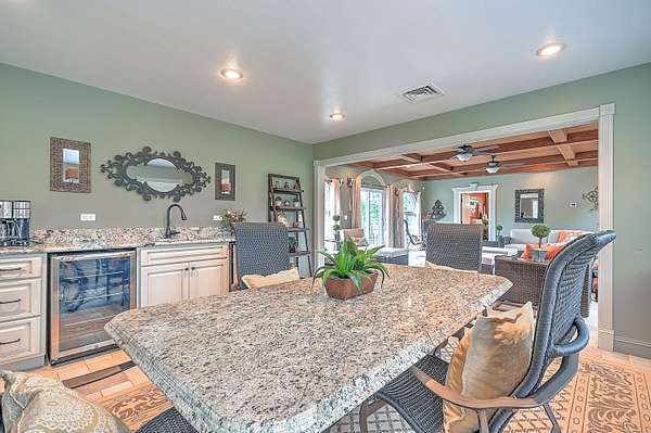 - Bar, Built-In Features, Central Vac (Plumbed), Central Vacuum, Eat-In Kitchen, Entrance Foyer, Granite Counters, Kitchen Island, Kitchen/Dining Combo, Marble Counters, Pantry, Soaking Tub, Utility Sink, Walk-In Closet(s)