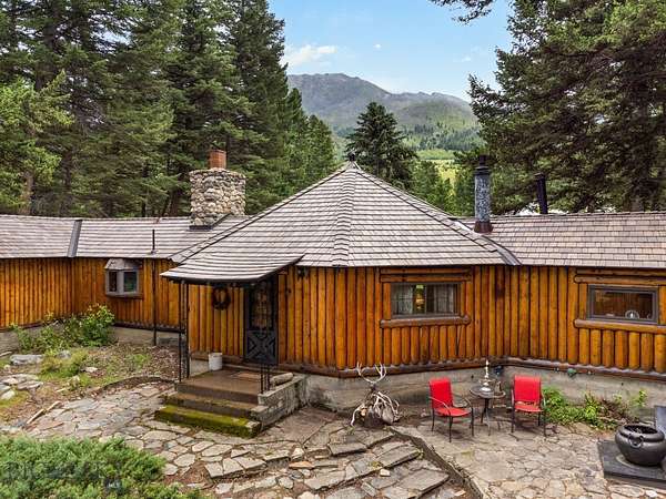 Tucked away in a private stand of mature evergreens with Deep Creek flowing right through the property, this hand-crafted log home is more than a residence - it's a piece of Montana history far from the noise of town, city lights or traffic. Whether you're looking to experience a bit of the Montana magic portrayed in Yellowstone the movie, create a destination venue, or a home base that blends living and working, this property offers the rare combination of beauty, versatility, and privacy. There's room-- for gatherings, creative projects, or even staging a business on-site all while enjoying the sound of running water and the smell of pine. If you've been searching for a one-of-a-kind setting in Paradise Valley - a place to bring family together, host unforgettable events, or anchor your Montana lifestyle - this is the property you've been dreaming of.