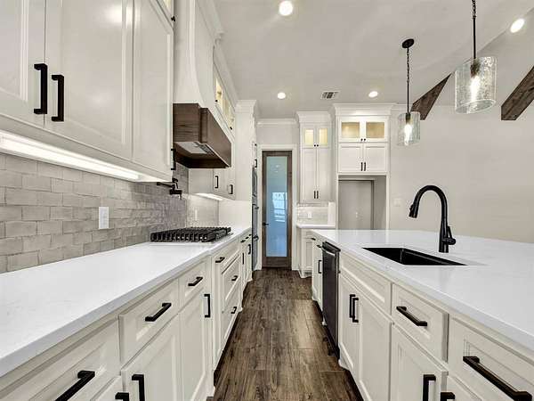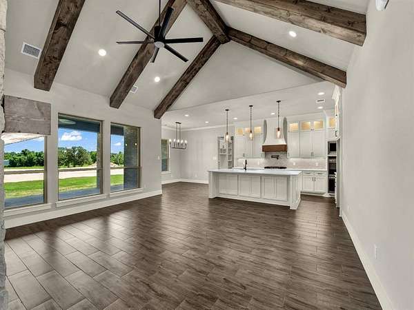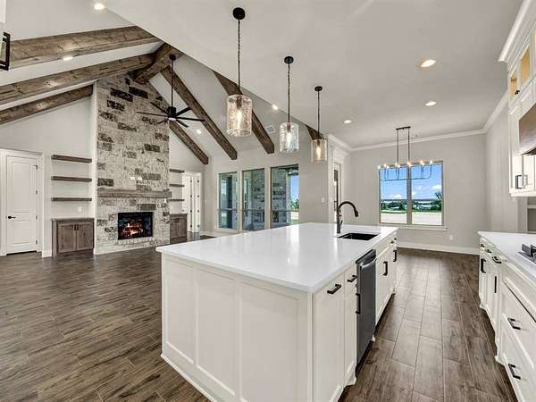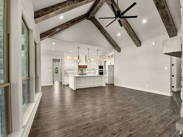 25 K CONCESSIONS MOVE IN READY! LBK Homes has just completed a New Traditional Style home at the Brand NEW Sub-Divsion Rangewood . This is a beautiful 2 acre Home with 3 or 4 bedroom has a flex room that can be bedroom or study!, Also included is a dining and game room and 3 car garage with 3 bathrooms. The home has an inviting foyer that brings out the spacious family room filled with a vaulted living room ceiling and beautiful beams and craftsmanship throughout. The kitchen is accompanied with an enormous quartz island in the center, double ovens with a pot filler all stainless steel and lg over sized cabinets with upper and lower cabinet lighting. The primatry suite has a large walk in closet a separate tub and a separate shower and vanities. Full encapsulation for excellent efficiency. Underground utilities with AT&T fiber as internet provider. NO HOA and NO City Taxes! Home is now 100 Complete!