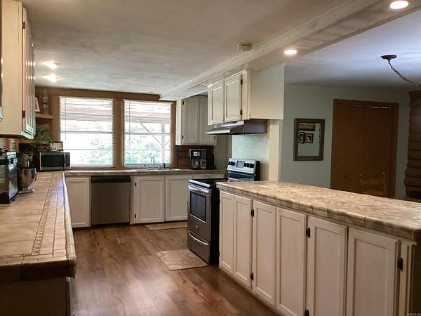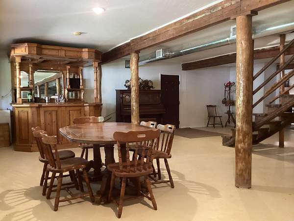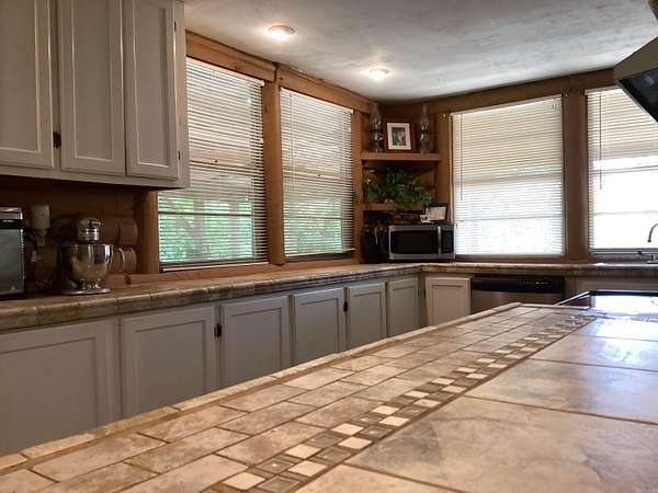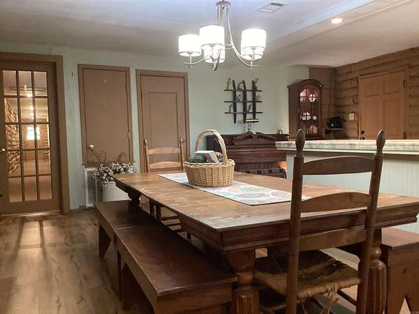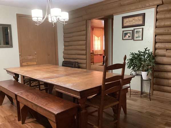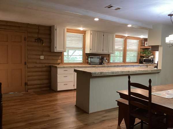 Adventure, serenity, or investment potential. Located in the Board Camp community, this spacious log-and-frame home boasts nearly 6,000 square feet of living space and is surrounded by wooded hillsides, offering multiple potential building sites. Perfectly designed for large gatherings and outdoor recreation, the lower level features a massive recreation room, commercial kitchen, bar area, office, bathhouse-style bathroom, and private bedroom. The space is ideal for entertaining groups, processing game, or hosting weekend visitors. Outdoors, there's a full outdoor kitchen and direct access to the ATV trails. Wrap-around decks provide panoramic views and create seamless indoor-outdoor living. The flexible layout is suited for multi-family living, a private retreat, or income-producing rentals. Ride from the garage to Wolf Pen ATV Trails. The garage offers a mudroom and workshop along with storage. This property caters to ATV/outdoor enthusiasts & hunters. Ideal as a personal mountain retreat, hunting lodge, vacation rental. New Electrical Panels, water heater, multiple heat and water sources.