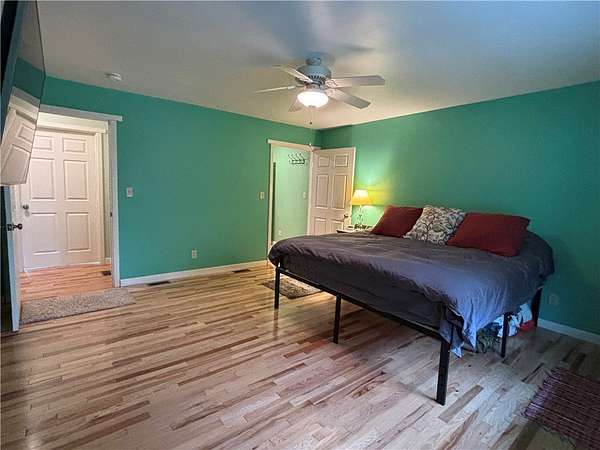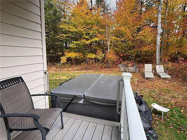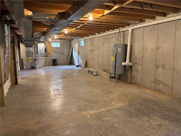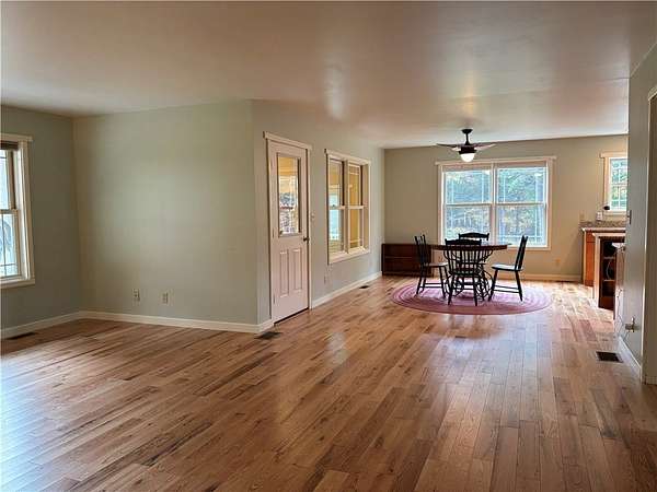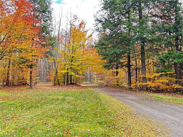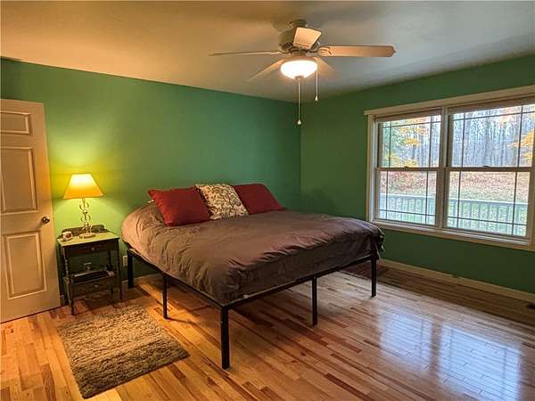 Ranch home in the country! This newer original owner 2011 built one level living home on 5.34 private acres with 20 x 40 garage is move in ready! This 2-bedroom, 2-bath home offers quality craftsmanship and thoughtful details throughout. The open-concept kitchen features granite countertops, cherry cabinetry, a center island with propane stovetop, and matching appliances with dining area. The spacious living area includes oak floors and cathedral ceilings, with a cozy flow into the sunroom just off the kitchen. The primary suite offers hickory floors, a walk-in closet with shelving and safe, that leads into the primary bath. The large walk-in shower with double sinks and tile floor completes the suite. The 2nd bedroom has ample closet space and easy access to the second full bath that includes laundry. The full basement offers a partially finished area with a large closet-perfect for a rec room, office, or guest space on the other side is a great space to finish or have a workshop or tons of storage. The central A/C will keep you cool in the summer, and the well-insulated 6-inch walls not only retain warmth in the winter but also provide excellent soundproofing. An automatic whole-house generator is there for back-up and peace of mind. The Hardie Board siding is durable and low maintenance as well as the Trex decks outside. There is a fenced in yard for your pers and and a salt water hot tub perfect for relaxing or entertaining. The 20x40 pole barn style garage offers electric, a concrete floor, and plenty of room for hobbies, vehicles, or storage. Plumbed for radiant heat. Located on a private road, this property combines privacy, efficiency, and a peaceful country retreat. The undeveloped private road gives you options to hike and enjoy the wildlife!