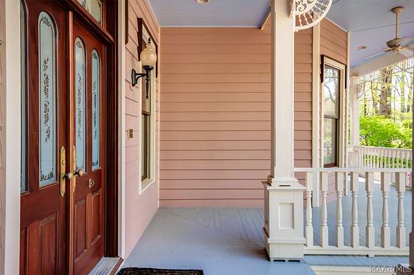Welcome to an extraordinary residence where timeless craftsmanship meets modern comfort. This expansive estate blends Victorian inspiration with premium contemporary updates, offering a rare level of detail, quality, and character throughout its thoughtfully designed spaces. Newly refinished mahogany double front doors with frosted glass set the tone for the remarkable interiors. Step into a grand two-story foyer, framed by oak floating-panel wainscoting, grooved oak floors accented in mahogany, and a custom replica Victorian chandelier. Ten-foot ceilings continue throughout the home, creating a sense of openness and elegance in every room. The main living area features a dramatic floor-to-ceiling custom oak fireplace mantle and a wood-burning fireplace. For entertaining, the home includes a dedicated entertainment closet and a built-in bar with sink and glass shelving. The primary suite is a luxurious retreat, complete with dual walk-in closets and a serene sitting nook inside the turret, framed by a 12-foot ceiling and leaded glass window bordered in mahogany. The primary bath features a slipper tub, dual sinks, and a spacious shower with both spray and rainfall heads. The remodeled kitchen is a chef's dream, featuring a stainless Wolf stove with induction 5-eye cooktop, Zephyr 6-level hood, Sub-Zero refrigerator, pot filler, two ovens (Wolf + KitchenAid), under-cabinet lighting, and an icemaker. A lovely bay window overlooks the pool area, adding charm to the breakfast space. Storage is abundant with a large custom pantry and a laundry room outfitted with cabinetry and sink. . Outdoor living is equally impressive. The cedar siding is low maintenance and a well provides water for irrigation and pond fill. Enjoy summers by the 18*36 pool with a new liner or relax on the gazebo and back porch. With a blend of luxury finishes, Victorian elegance, and meticulously maintained systems, this home offers a lifestyle of comfort and beauty-inside and out.