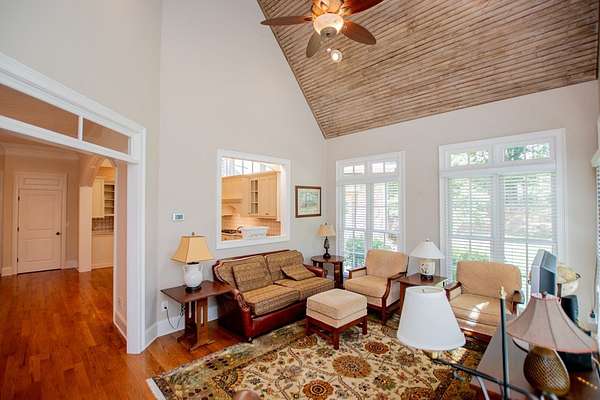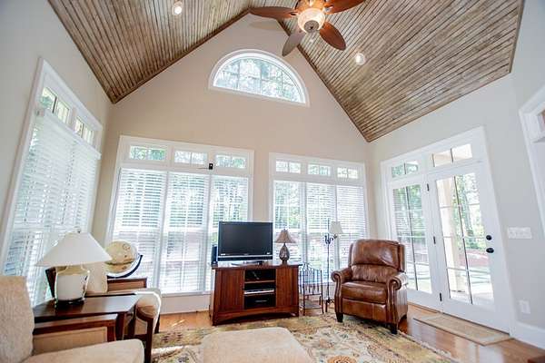 - Cathedral Ceiling, Ceiling Fans, Drapes/Blinds, Fireplace, Garage Door Opener, Garden Tub, Master On Main, Smoke Alarm, Walk-In Closets