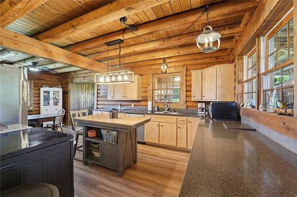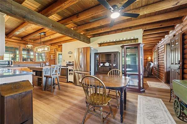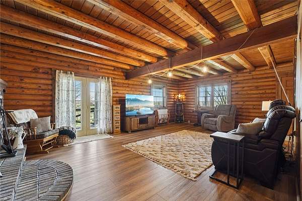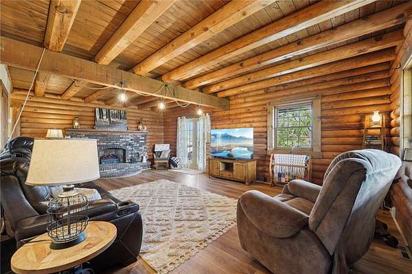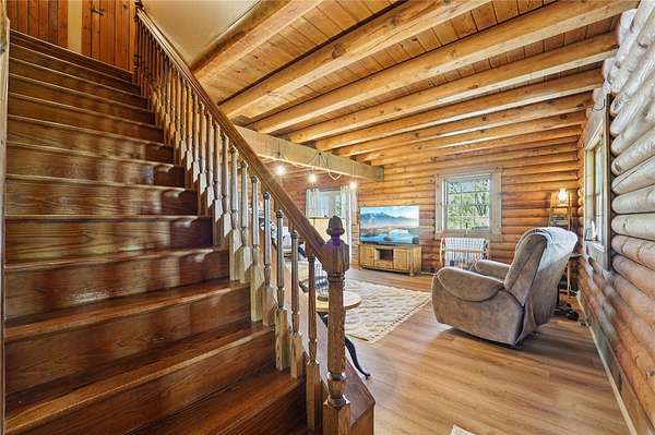 A truly amazing Log Home sitting on 1.5 acres in the scenic Lower Burrell area! The wraparound porch is sure to impress and delight with its outdoor atmosphere and grand views across the hillside and quaint neighborhood. Step inside the front door and be wowed by all the genuine wood beams and luxury vinyl wood plank flooring throughout the main level creating a feeling of true warmth. Further adding to that is the woodburning fireplace in the living room, currently donned with a beautiful electric insert for convenient ambiance. The eat-in kitchen has a tremendous amount of granite countertop space along with cabinets interlaced between windows providing an abundance of natural sunlight. Adjacent to the dining area is a bonus room that could easily be setup as a walk-in pantry or office space depending on your needs. A half bath and the laundry room can also be found on the 1st floor; further adding to the convenience of this amazing abode. And lest we forget... the giant sunroom leading from the kitchen to the backyard... providing the perfect place for lots of future memories playing games or enjoying the peacefulness. Upstairs you'll find the master bedroom with full en suite bath and not just one, but two closets. Two more generously sized bedrooms and another full bath finish off the 2nd floor. The basement has an optional set of laundry connections with a wash tub, a second half-bath, and plenty of storage room. Walk straight into the 2-car integral garage and appreciate the convenience of bringing groceries in without having to deal with inclement weather... Though you'll surely appreciate the new roof just installed last year (2025) when the weather does take a turn for the worse. There's also updated lighting, new plumbing fixtures, and keyless entry on the front and rear doors; bringing a modern touch to this warm classic. Schedule your tour today to checkout this beauty for yourself!