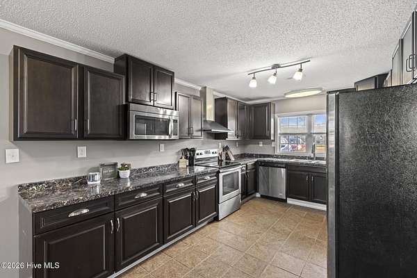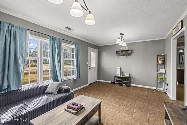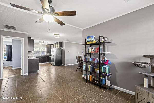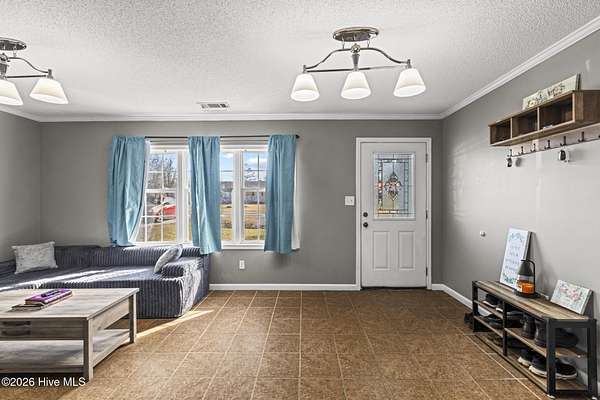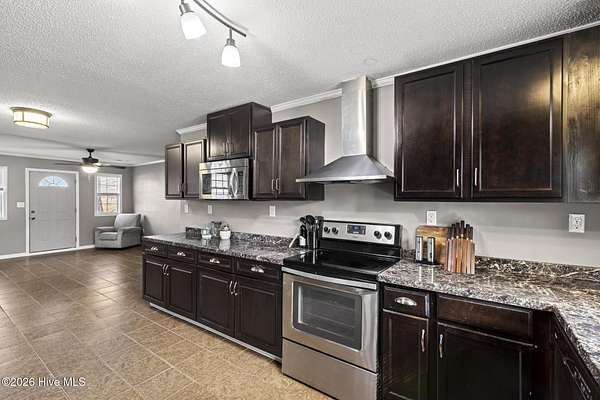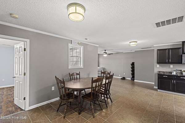This beautifully updated four bedroom, two bath brick ranch is located on 1.69 acres, just minutes from the heart of Wallace and close to I 40. Enjoy peaceful, quiet living with no HOA while still being close to town. Tile flooring flows throughout the kitchen, living room, and den for a seamless, low-maintenance style. Just off the kitchen, a flexible bonus space is perfect for conversation, entertaining, or a cozy reading nook. The spacious bedrooms provide comfort and versatility, and both bathrooms feature beautifully tiled walk-in showers. The laundry room includes built-in cabinets and a folding counter for easy organization, and stainless steel appliances convey. Step outside to the patio and expansive yard, ideal for relaxing, outdoor gatherings, gardening, or simply enjoying the open space