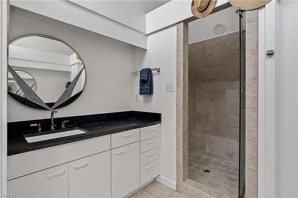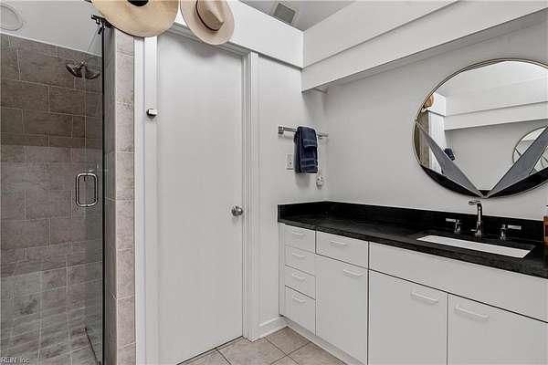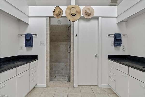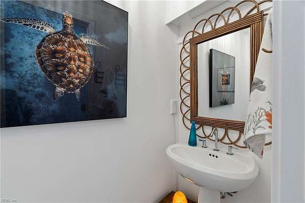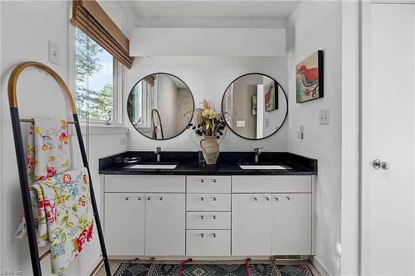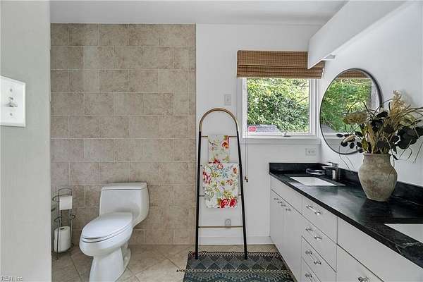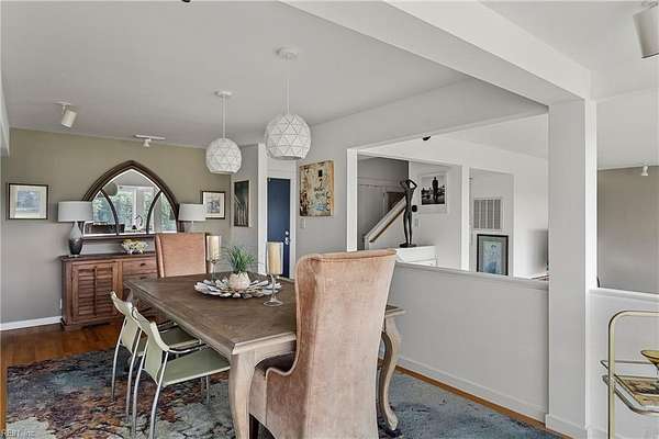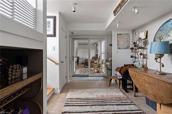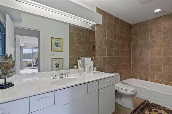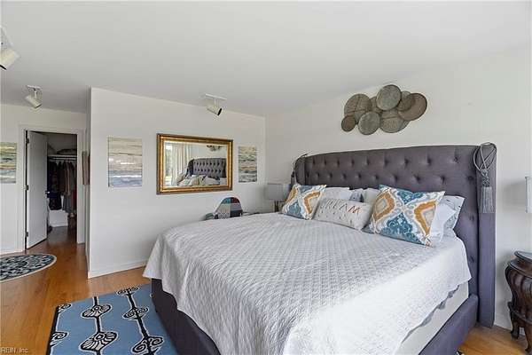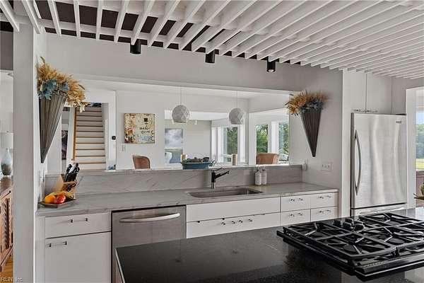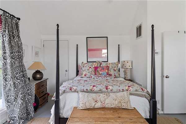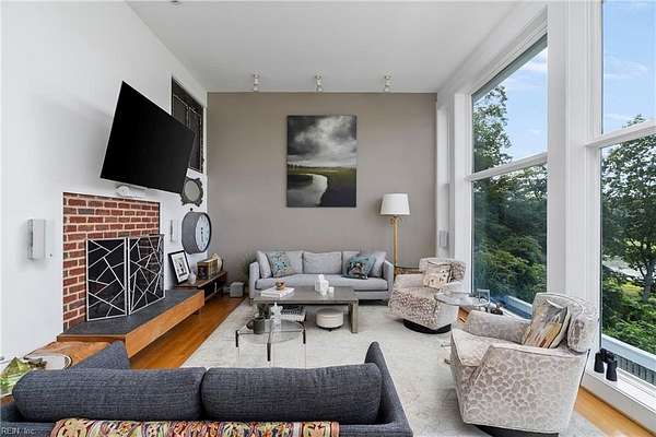 Architecturally stunning contemporary by Carlton Abbott in desirable Queens Lake. Perched atop a 60-ft slope on 3.83 acres, this 4,100+ sq ft home offers sweeping Queens Creek views from nearly every room. Abbott's signature design highlights dramatic rooflines, hardwood floors, natural wood finishes, expansive windows, and peaceful outdoor living. A striking foyer opens to a floor-to-ceiling glass living room. The top-floor primary suite boasts a private balcony, full bath, dressing area, and multiple closets. Three additional bedrooms, 3 full baths, and 2 half baths span 5 unique levels. Great for entertaining, the lower-level screened porch with fireplace and multiple outdoor spaces provide year-round enjoyment. Additional features include a whole-house generator, newer 3-zone HVAC, and updated gutters. Optional Queens Lake membership offers marina, pool, and tennis. Minutes to Colonial Parkway, I-64, Jamestown, Yorktown & W&M-where privacy and convenience meet.