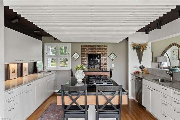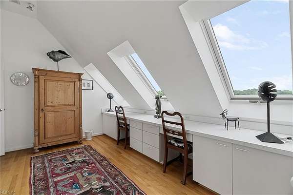 - Cathedral Ceiling, Fireplace Gas-Natural, Fireplace Wood, Primary Sink-Double, Pull Down Attic Stairs, Skylights, Walk-In Closet