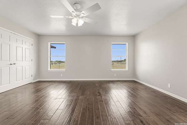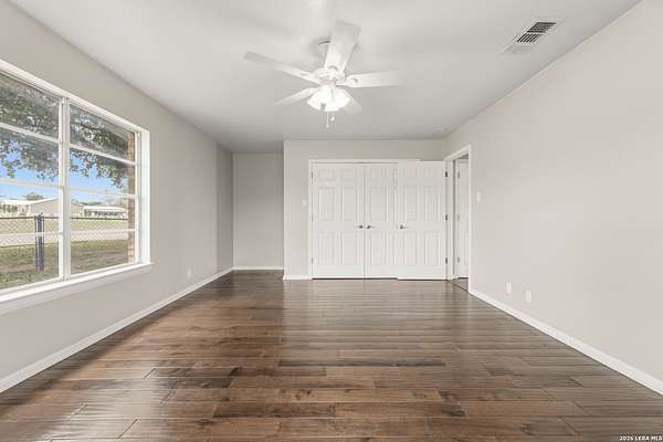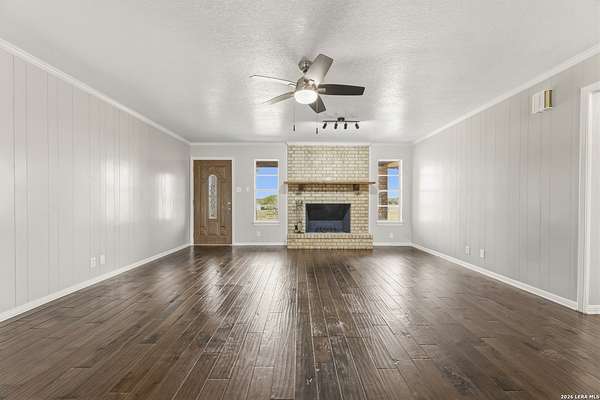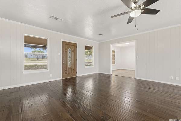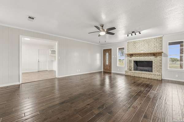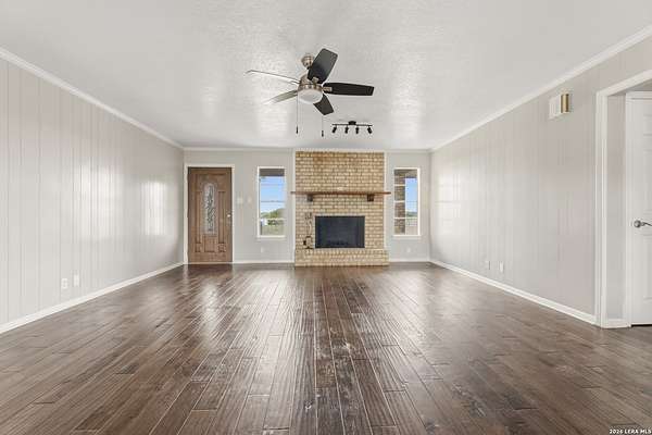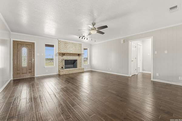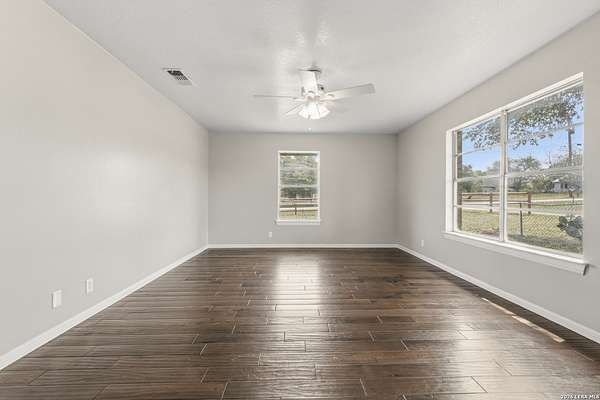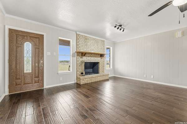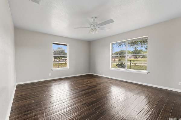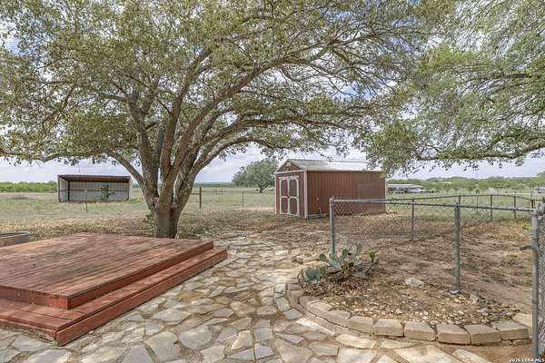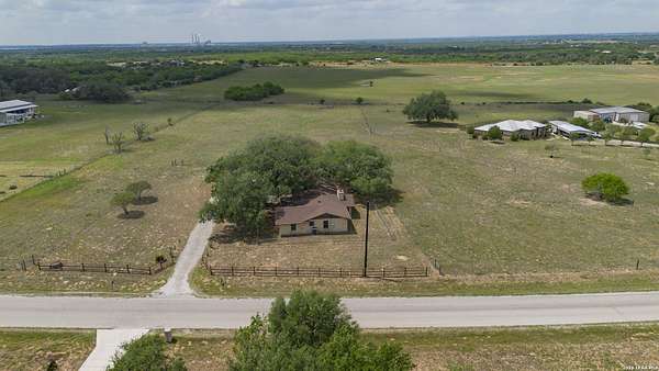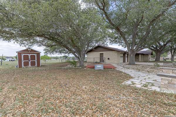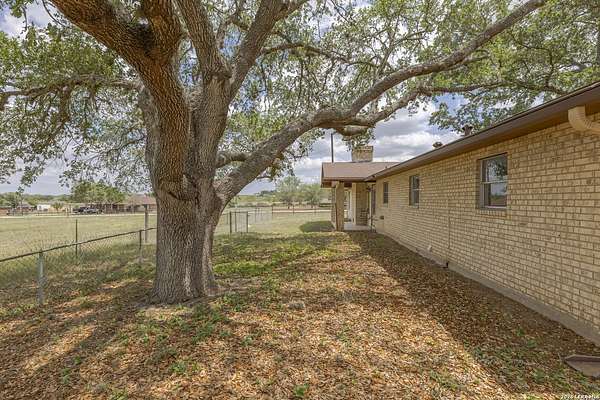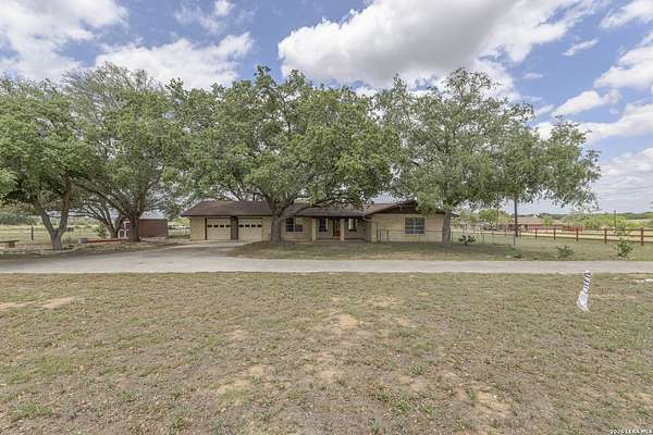 Welcome to your Light Filled, graceful, 2/2/2 home in the heart of Adkins, on over 4+ acres, that is fully fenced, where small-town charm meets everyday comfort. This inviting property offers a peaceful setting with plenty of space to relax, entertain, and make your own. Step inside to discover a warm and welcoming layout featuring spacious living areas filled with natural light, with gorgeous vinyl throughout. You will love the classic, wood burning, fireplace in the living room. The kitchen provides ample, bright white cabinetry and workspace, perfect for both daily living and hosting gatherings. You have a smooth cooktop and breakfast bar, with classic ceramic tile flooring. Comfortable, spacious bedrooms offer a quiet retreat at the end of the day, with plenty of usable space, while the primary suite provides added privacy and convenience. Outside, enjoy a generously sized yard with room to garden, play, or simply unwind under the Texas sky with an amazing view of downtown San Antonio. You will enjoy having your family and friends over for great BBQ's and enjoy sitting around the fire in the evening. Conveniently located with easy access to nearby amenities while still offering that peaceful. Don't miss your opportunity to own the Texas Gem!