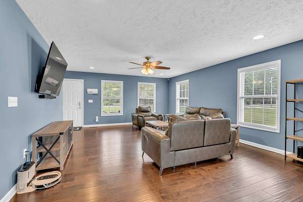 Est $2,559/moWelcome home to this charming property nestled on almost 2 acres! NO HOA & NO CITY TAXES! Embrace the tranquility of nature as you relax on the covered back patio, offering a perfect blend of outdoor living and privacy. Updated kitchen with new farmhouse sink, backsplash, and quartz countertops. Primary bedroom DOWN, soaker tub with jets in primary bath, no carpet for easy cleaning. Oversized bedrooms plus a media room! Fenced backyard with plenty of space to expand! Less than 10 minutes to I-24, convenient for those who commute. Upgraded insulated garage door for energy efficiency!