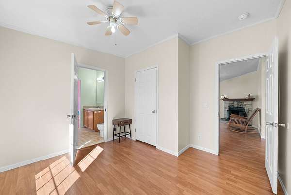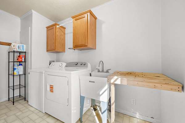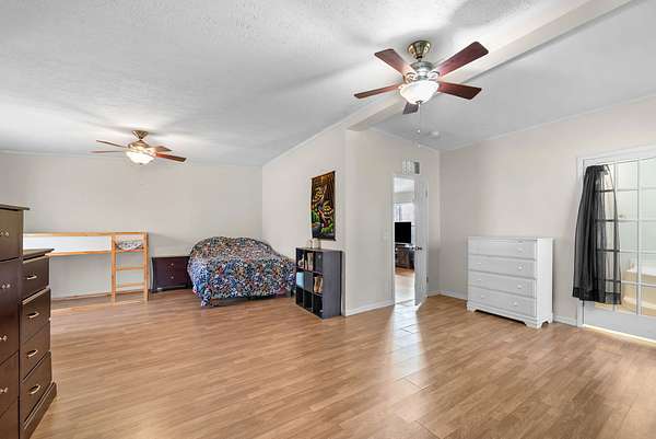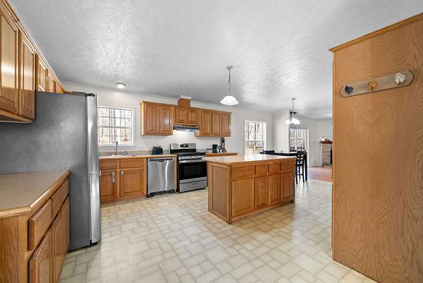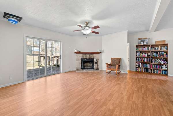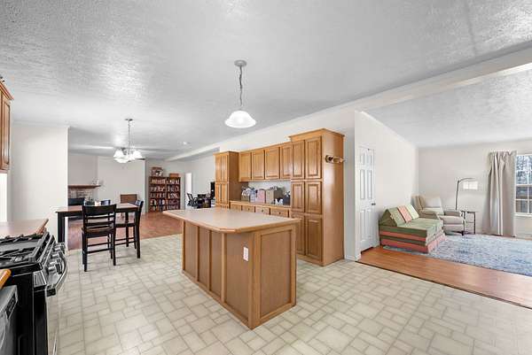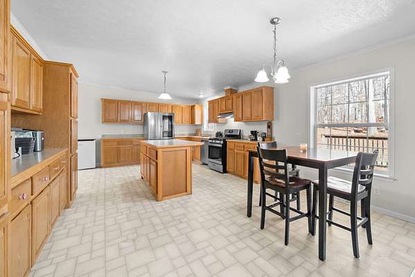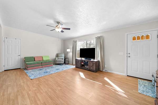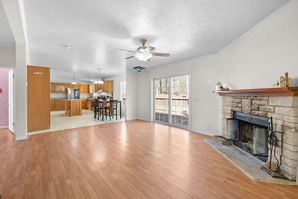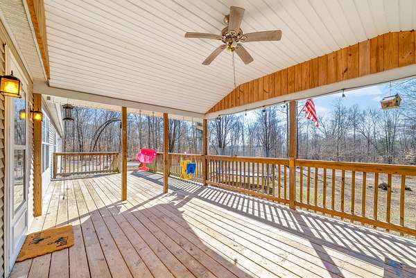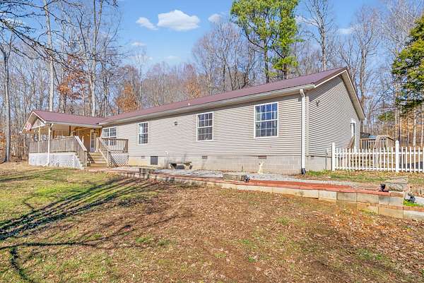 Enjoy peace and privacy with this spacious 4-bedroom, 3-bathroom home situated on 3.76 beautiful acres. This doublewide manufactured home sits on a permanent foundation and offers the perfect blend of comfort and functionality. Step inside to find laminate flooring throughout, a split floor plan, and multiple living areas -- including a large den and a cozy living room with a wood-burning fireplace. The oversized kitchen features a propane stove and plenty of cabinet space, ideal for family gatherings or entertaining. The home includes a covered front porch and a large back deck, perfect for relaxing or enjoying outdoor living. The 6-foot fenced backyard offers security and space for pets or gardening. A large detached garage with electric service provides excellent storage or workshop potential, and it also includes: Plumbing An additional bathroom Washer and dryer hookups Potential for a future apartment or guest suite
