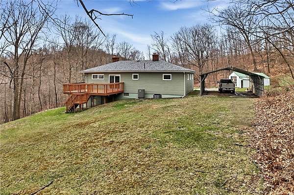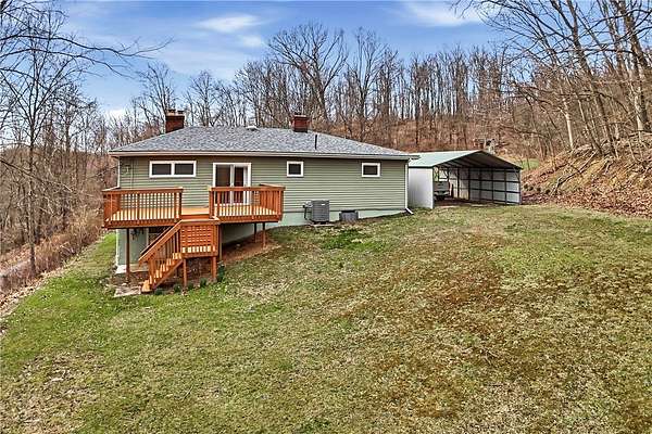 Welcome to 124 Middle Road!!! Your private retreat nestled on 10 beautifully wooded acres, offering peace, privacy, and endless possibilities. This unique property includes oil, gas, and mineral rights that will transfer to the new owner, adding exceptional long term value. This charming 3 bedroom, 1.5 bath home offers approximately 1,780 square feet of living space. A new roof with 30 year coverage provides peace of mind for years to come. Inside, you’ll find a spacious 28’ x 15’ living room centered around a cozy wood burner perfect for relaxing evenings and creating a warm, inviting atmosphere. The large, open kitchen offers abundant cabinet and storage space, a charming corner breakfast nook, and additional seating for four, making it ideal for both everyday living and entertaining. Just off the kitchen, the attached dining room provides a comfortable and versatile space for gatherings, family meals, or simply unwinding. All three bedrooms are generously sized, with the primary bedroom featuring two closets for added convenience. The full bathroom includes both a tub and shower, with plenty of room to move comfortably, while the half bath adds extra functionality and needs a new sink. Enjoy the beauty of the outdoors from the inviting wraparound front porch or the rear deck located just off the kitchen and dining area, perfect for morning coffee, evening relaxation, or entertaining guests. The full, unfinished basement offers excellent storage or future finishing potential and includes an additional bathroom with a shower and toilet. Heating options include a second wood burner as well as an electric heat pump, giving you flexibility and efficiency year round. The seller has also installed transferable wall anchors for added structural assurance. Outside, immerse yourself in nature with private trails, hill climbs, rock formations, and excellent hunting opportunities right on your own land. A large detached garage with glass doors is perfect for a workshop, storage, or additional parking, complemented by a separate two car carport. This property is more than just a home, it’s a peaceful escape. You truly have to see it to appreciate the serenity and natural beauty it offers. Schedule your showing today!