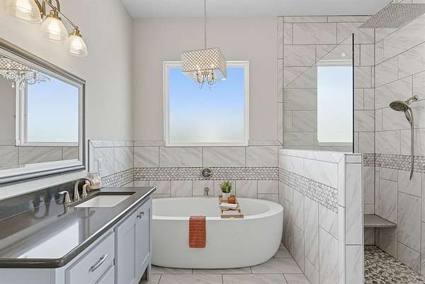 - Cathedral Ceiling(s), Chandelier, Decorative Lighting, Double Vanity, Flat Screen Wiring, Granite Counters, High Speed Internet Available, Kitchen Island, Open Floorplan, Pantry, Vaulted Ceiling(s), Walk-In Closet(s)