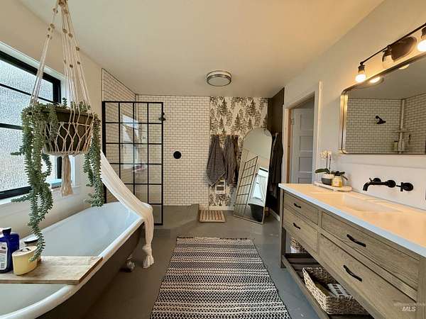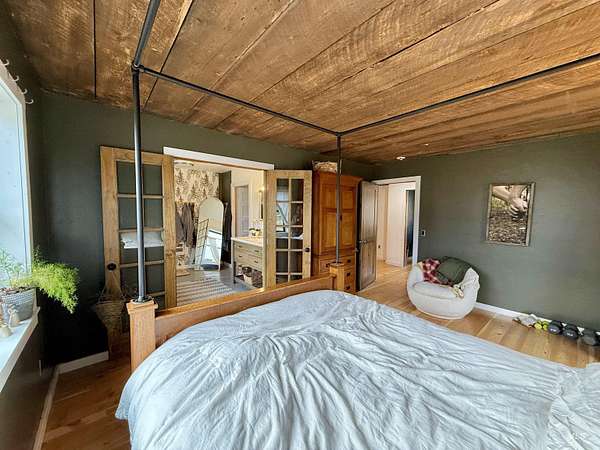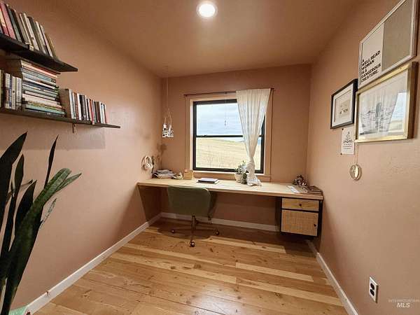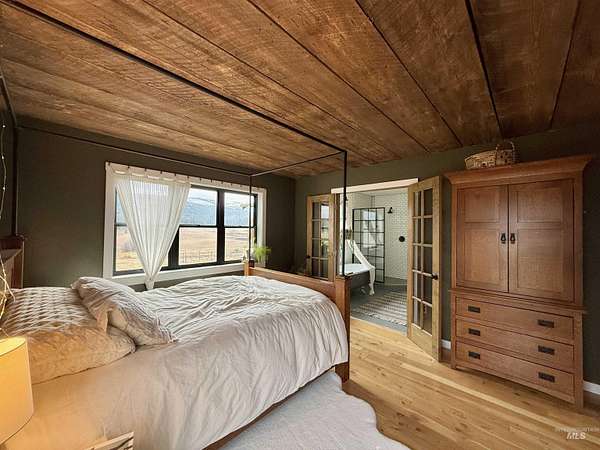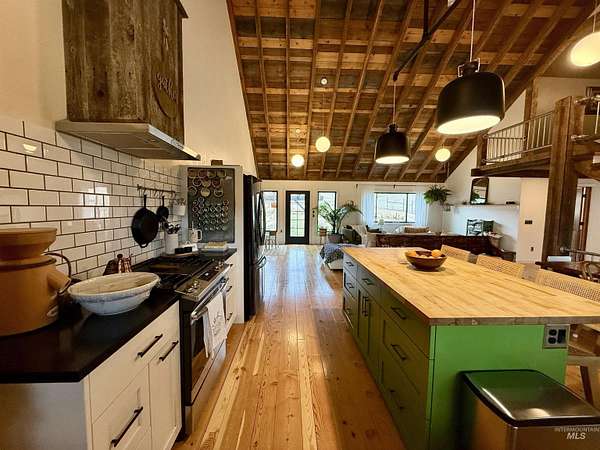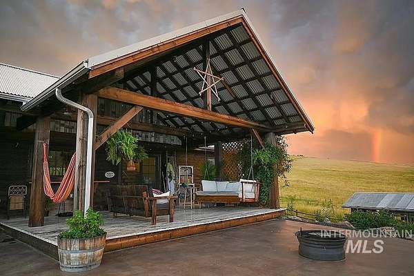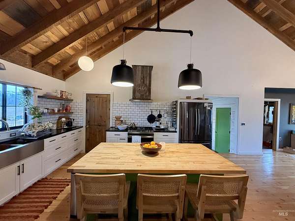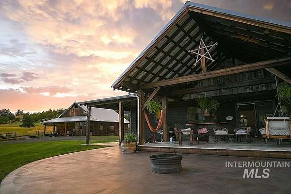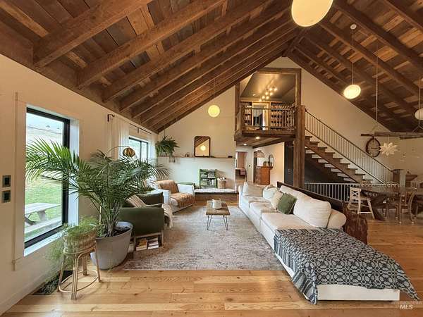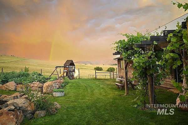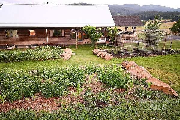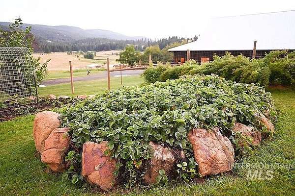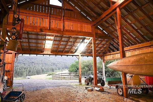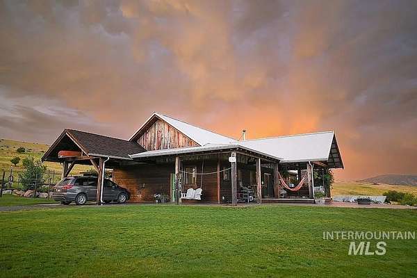 Welcome to this exceptional mountain farmhouse set on 10 acres of productive hay and pasture in the desirable Mill Creek Valley, offering gorgeous panoramic views, end-of-road privacy, and abundant wildlife-all just 10 minutes from Grangeville. Built in 2019, this 5-bedroom, 3-bath, 3,744 sq ft home showcases timeless craftsmanship and a warm mountain aesthetic. Exterior features include a heavy 24-gauge Galvalume corrugated roof, cedar siding with two-step fascia and trim, and black Marvin thermal pane windows. The open-concept interior features vaulted ceilings with fir timber rafters, solid wood flooring, custom cabinetry, and a spacious kitchen with large island and pantry, ideal for entertaining. The walk-out basement offers in-slab radiant heat and a wood stove, creating a cozy and functional living space. Enjoy outdoor living from the covered porch and acid-stained concrete patio. The property includes a 40x50 barn with loft, tack room, and concreted shop area, woodshed, and professionally installed rail and Kencote horse fencing. A large, high-fenced garden and orchard feature raspberries, strawberries, grapes, hardy kiwi vine, and peach, apple, apricot, cherry, and mulberry trees. Watch elk, deer, turkeys, and geese roam through the valley. Private, peaceful, and well cared for-this is refined country living at its best.