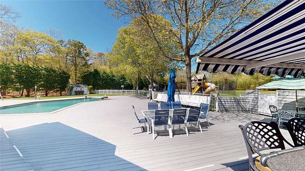Very ultra private must see Estate in Westhampton. Custom built 5,200 sq ft postmodern, 4 en suite bedrooms, heated 3 car garage, full house generator, private well w/irrigation, 2000 feet from Montauk hwy,. Just 2 miles from the revitalized Westhampton Main st., and cultural activities. 1st floor has grand 2 story entrance, formal LR., and DR both with river rock fireplaces, paneled den/media room, breakfast room, enclosed hot tub room, laundry/mud room, 3 en suite bdrms on main floor, kitchen w/ granite counters, stainless steel appliances, butcher block island, 2nd floor primary bdrm w/fireplace, 2 generous built in closets, marble bath w/jacuzzi, steam shower, 2 private office areas, additional very generous storage/closet, private deck, w/private circular staircase down to the deck and outdoor activities, which include Gazebo, geneour outdoor bar with electric awning, gunite pool w/shed, outdoor shower, sauna, Har-Tru tennis, horseshoe pit, Bocci court, spacious patio, and delightful entertainment area. Basement is finished w/OSE, workout room, pool table room, w/1/2 bath,music room, additional maids quarters w/full bath, shop area, an amazing family plus extended family home with endless possibilities for all your dreams in 1 home!