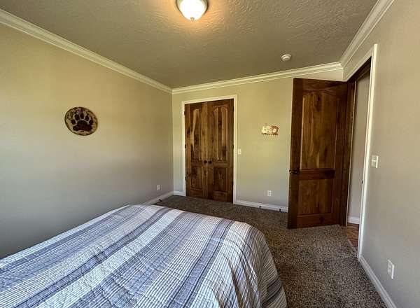 Custom 4126-square-foot, 3-bedroom, 3-bath home situated on 8.16 acres in the heart of the Potomac Valley. This residence, built in 2006, offers an accessible layout with custom Black Walnut cabinetry and built-ins. The chef's kitchen includes a copper sink, pot filling faucet, wall oven, side-by-side refrigerator, and an oversized breakfast island. Perfect for hosting, the open living area features a spacious wet bar with seating for seven, a wine cooler, dimmable lighting, TV, and an additional full-sized refrigerator. An extra room off the kitchen, currently holding a pool table, could serve as a living room, theater, or den. The Master Suite boasts elegant wood closets, access to the back patio with a hot tub, a full bathroom, and an attached laundry room. The property also offers two commercial shops with insulation, heating, and three-phase power, along with Union Creek running at the southern end for trout fishing.