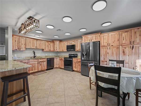 Step inside through a wide foyer that seamlessly flows into a spacious family room, where soaring ceilings amplify the sense of openness and elegance. The heart of the home is the newly renovated kitchen, featuring hickory wood cabinets with convenient roll-out drawers, modern appliances, and an eat-in area framed by a picture window offering breathtaking lake views.