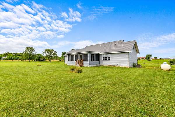 Welcome to this charming 3-bedroom, 2-bath home nestled on a peaceful 3-acre lot in Seymour! Surrounded by mature shade trees, this property offers just over 1,300 sq ft of comfortable living space with room to spread out and enjoy the outdoors. Recent updates include a new metal roof, new siding, newer central heating and air, a newer septic system, and a newer hot water heater--providing peace of mind for years to come. Enjoy outdoor living with a new front porch and an enclosed screened-in back porch. Step inside to a spacious living area featuring cathedral ceilings and a cozy fireplace, perfect for gathering with family or friends. The kitchen is warm and inviting with wood cabinetry and plenty of storage. The home also offers an unheated sunroom that leads to the backyard.
