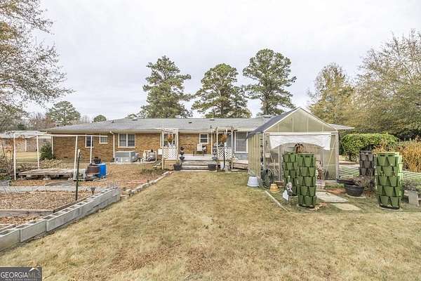 If moving to the country and eating lots of peaches are not just song lyrics to you and you still want the advantage of modern conveniences, then 124 S Tamie Circle just might be for you. This is where burb-steading comes to life. This 4BR/3BA ranch sits on just over 3 acres, zoned agricultural so you can bring your chickens, goats, and other critters. Inside you will find spacious, light-filled rooms, a farmhouse sink, gas stove, wet bar, and a Halo air purification system in the HVAC. Step outside to your private oasis: a saltwater pool, large shop, greenhouse, raised beds, muscadine vines, blueberry bushes, pecan trees, and lush zoysia grass. Tea olives, jasmine arches, and colorful blooms complete the picture. Enjoy the best of both worlds with peaceful country living and suburban convenience.