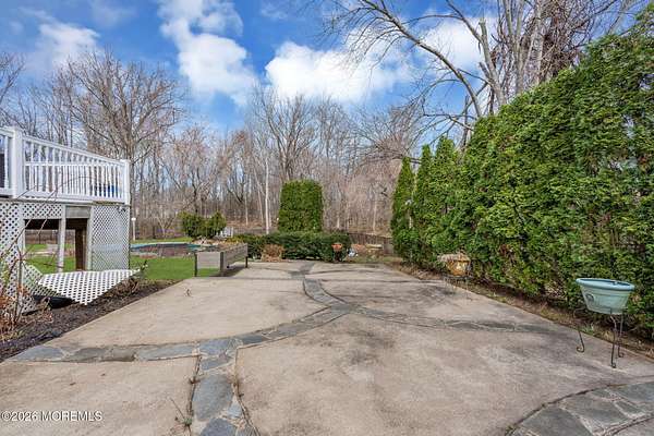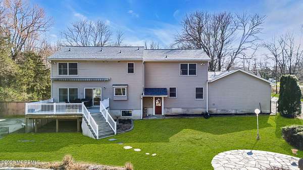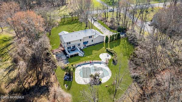 Set on over 6 picturesque acres in the heart of Manalapan, this exceptional 4-bedroom, 2.5-bath home offers a rare combination of privacy, space, and future potential. The expansive property presents a unique subdivision opportunity, making it ideal for both homeowners and investors alike. Inside, the home features a thoughtfully designed layout with generous living spaces. The large kitchen is appointed with stainless steel appliances, granite countertops, and a bright dining area highlighted by a wall of glass sliders that open to a deck overlooking the serene backyard. A dedicated first-floor office provides the perfect work-from-home setup. Upstairs, the spacious primary suite offers a true retreat with two oversized walk-in closets and a luxurious en-suite bath complete with a soaking tub and separate stand-up shower. Three additional bedrooms provide ample space for family or guests. Step outside to your private backyard oasis featuring an in-ground saltwater pool, surrounded by peaceful natural views. Additional highlights include a 3-car garage, full unfinished basement with plumbing already roughed for a future bathroom, and a 1-year home warranty for added peace of mind. Conveniently located near public transportation, shopping, dining, and within a highly regarded school system, this property delivers both lifestyle and long-term value in one of Manalapan's most desirable areas.