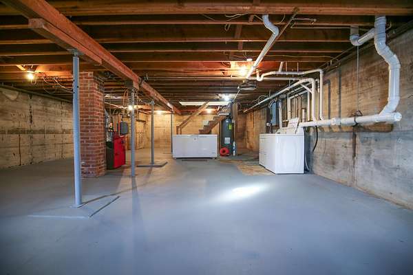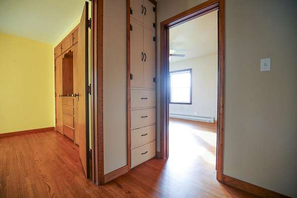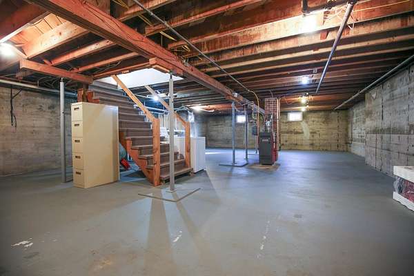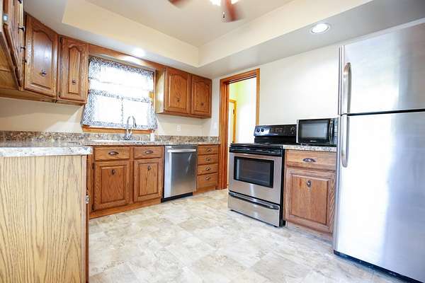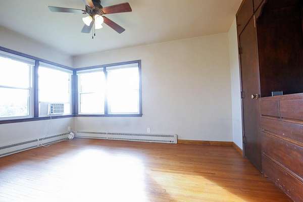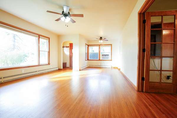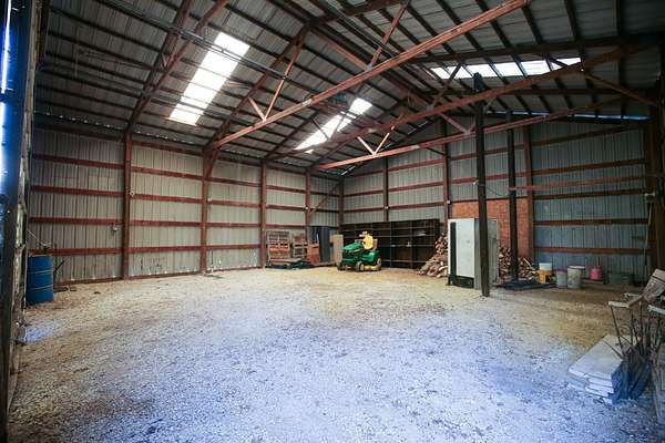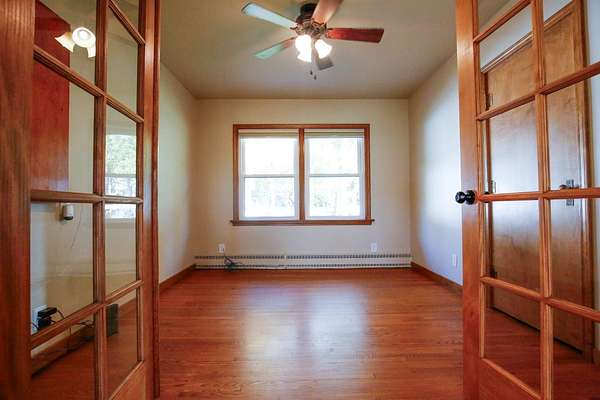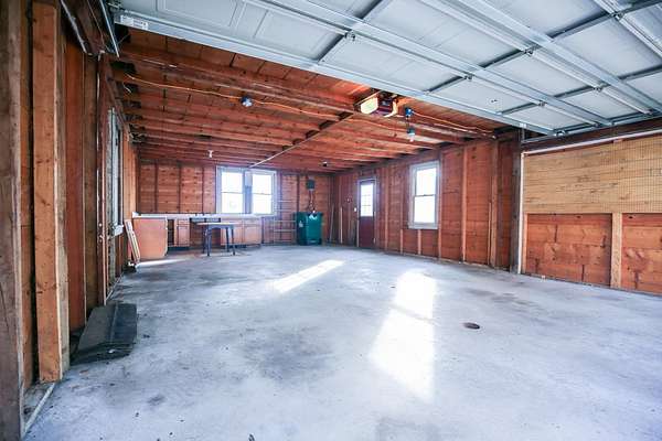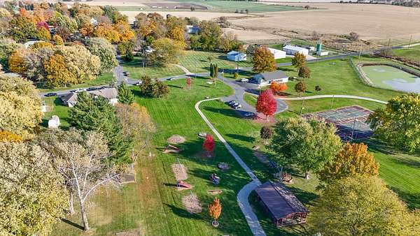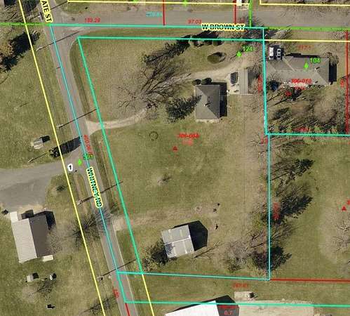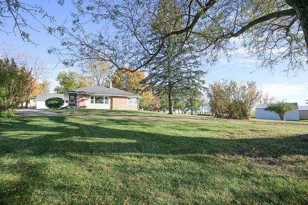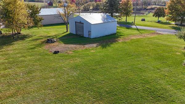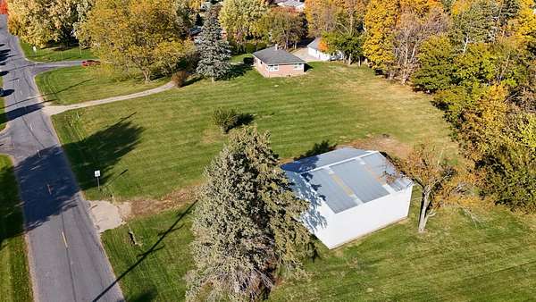 This charming one story brick ranch home offers an unbeatable lifestyle situated right on the edge of town. Enjoy immediate access to recreation being directly across from the village park and just a short one-block walk to the elementary school. Situated on a generous 1.95 acre lot with mature trees, this property provides the rare combination of a large yard in town with city water and sewer services. The home itself is move-in ready, featuring 3 bedrooms and 1 updated bathroom. Essential updates provide peace of mind, including a brand new gas powered boiler system for heat, updated plumbing and electric, and beautiful hardwood floors throughout. Please note, the home does not currently have central air conditioning and would require window air units for cooling. The third bedroom, featuring elegant French doors, offers a flexible, open feel, perfect as a study, den, or bedroom. In addition to the home, the property boasts practical exterior amenities including a detached two car garage and a large shed. This substantial outbuilding features a tall garage door and high ceilings, making it ideal for storing all your recreational toys or as a perfect space for someone looking to run a business out of their home. An unfinished basement offers ample storage or a blank canvas for future expansion. This property truly provides the best of both quiet, expansive living and convenient town access.