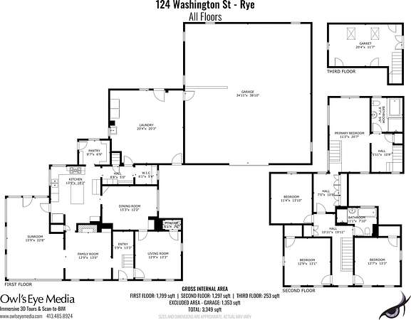 - Basement, Bathroom x 3, Bedroom x 4, Dining Room, Family Room, Kitchen, Living Room
