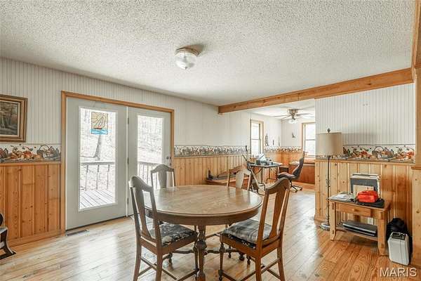 Discover privacy, serenity and adventure in this spacious, cedar sided home situated on a wooded 16.8 acres m/l, joining National Forest and Corps of Engineer property and just 1/2 mile to boat ramp with access to Wappapello Lake and all your favorite water activities. Enjoy the views while relaxing on the screened porch or patio. Main level has an open floor plan with living room, kitchen, breakfast area, dining room, 2 bedrooms and 1-3/4-baths and large utility room. Cozy upstairs is all open with a full bath and would make a great space for the kids or extended family members. Unfinished walk-out basement with 1-car garage presents the opportunity for unlimited extra living space. Property also has a mobile home for storage or with some TLC could have rental income potential. Unique spring house and spring supplies the properties water source. Perfect for a growing family, nature lover's retreat or hunting cabin.