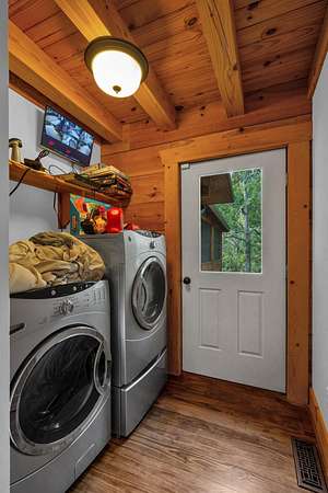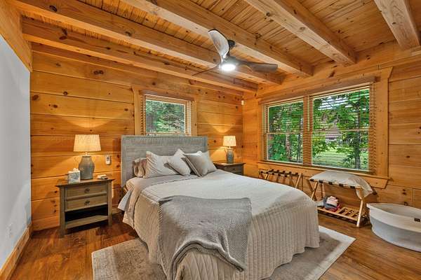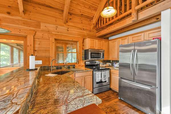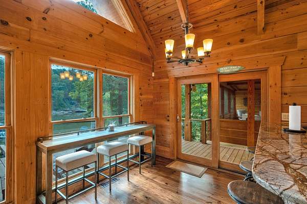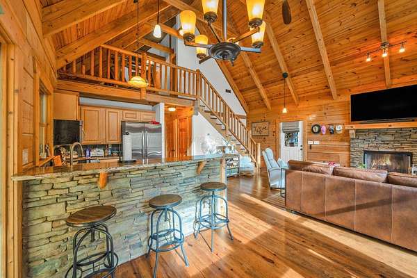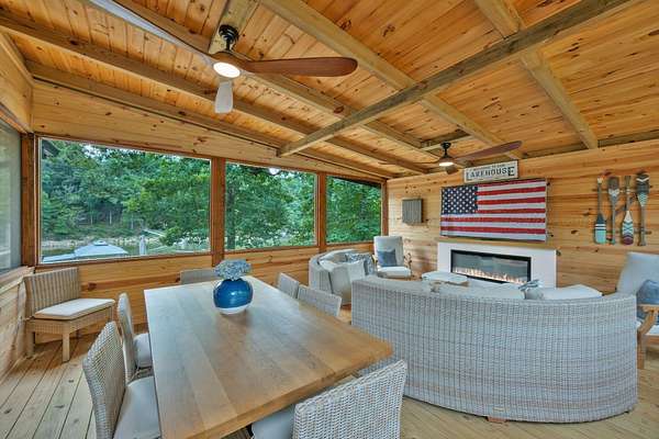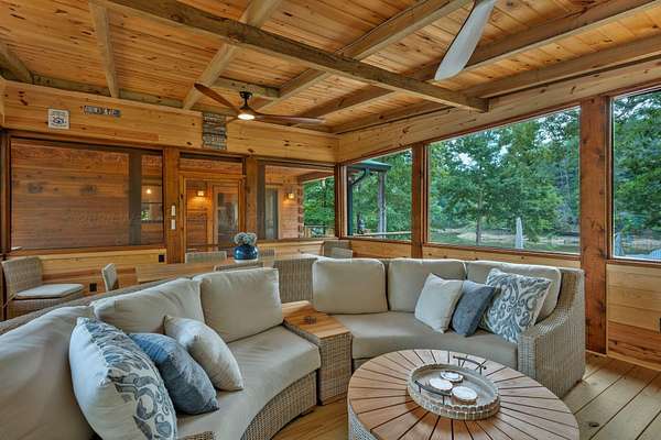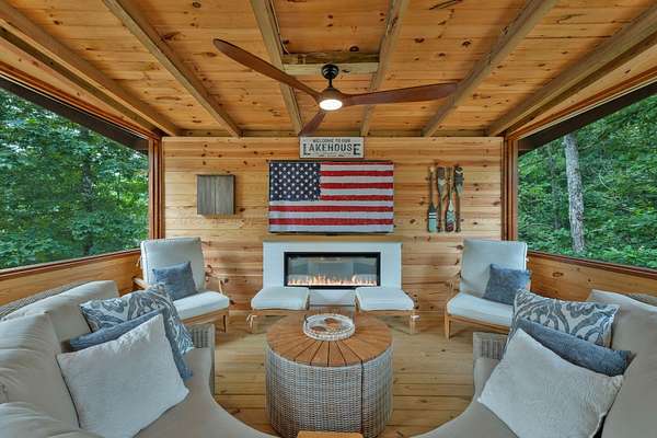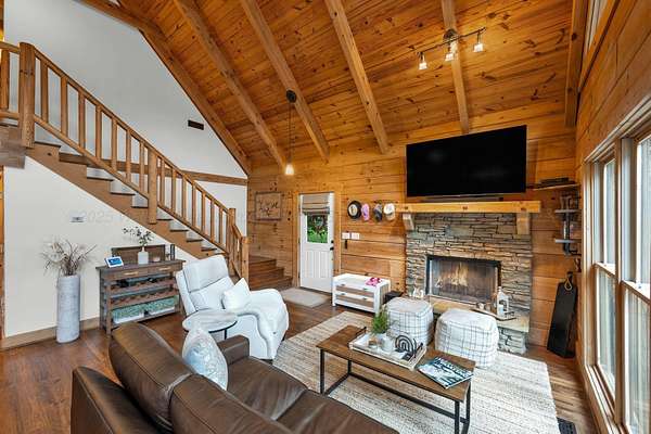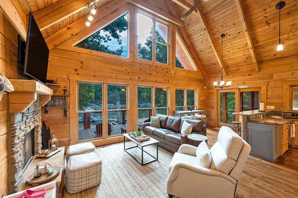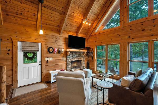 Est $3,745/moSmith Lake (Sipsey) This recently updated log home has the perfect blend of natural wood and finished walls. The open common space with a-frame ceiling makes the home spacious yet cozy and inviting. A wood burning fireplace gives you just the right rustic touch. Outside, the screened porch is where everyone will congregate! Over 400 sq ft of living ideal for football or movie nights.