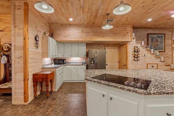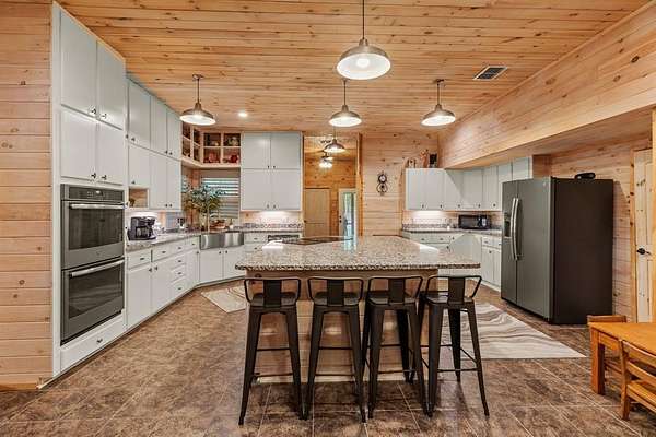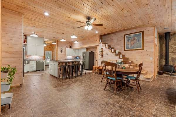 Escape to peace and privacy just minutes from Athens! This 3,400 sq ft home sits on over 18 acres at the end of a quiet, private road and offers 4 bedrooms, 3 bathrooms, and an 11x11 office (could serve as a 5th bedroom). One bedroom and bath makes a great mother-in-law suite. Features include 9' ceilings, open floor plan, wood-burning fireplace, and a wood stove. The chef's kitchen boasts granite countertops, double ovens, a large island cooktop, and a walk-in pantry. You'll love the spacious dining area and three covered porches perfect for entertaining. Extras: 9x12 storage room, attic storage with stairs, 2 car covered carport, 20x20 metal building, gated pipe entrance, firepit, and wrap around sidewalks. Surrounded by beautiful native trees - including many dogwoods - this is a serene East Texas retreat with room to roam.