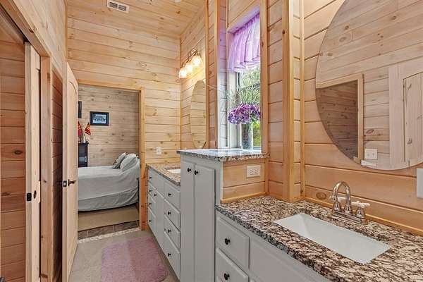 - Double Vanity, Eat-In Kitchen, Granite Counters, Kitchen Island, Natural Woodwork, Pantry, Walk-In Closet(s)