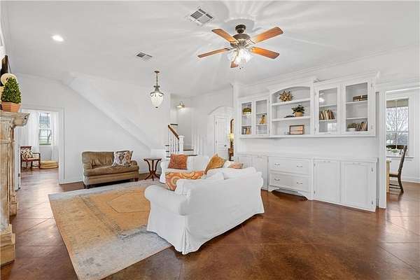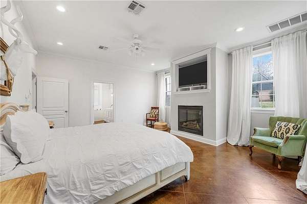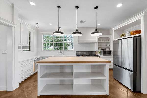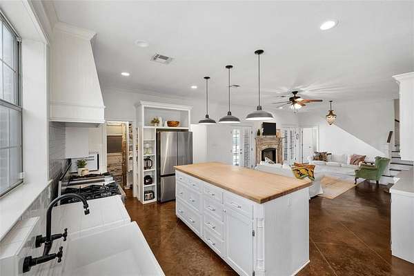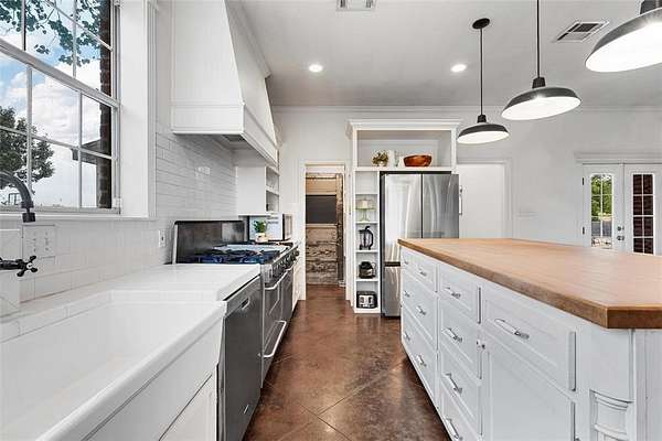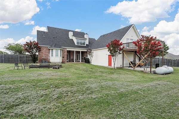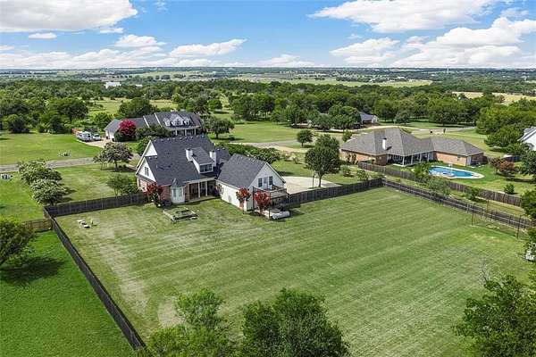 Ahhhh, the feeling of being relaxed when you arrive to your lovely home located in the Ranchcrest neighborhood. Although it's a short commute to town, the drive takes you past fields with crops and animals. And best of all, very little traffic. Then you step in to your spacious modern farmhouse and the feeling continues. Tall ceilings, lot of natural light and room to spread out. The home features 5 bedrooms, 3 living areas, 3 full bathrooms and 2 half bathrooms over 2 stories. The isolated main suite is located downstairs with its own fireplace and beautiful en suite. Double vanities, large tiled shower and a wonderful soaking tub offer the perfect environment to relax at the end of the day. The kitchen is a dream with a 6-burner gas range which also has a griddle and grill, 2 built in dishwashers and an awesome island with a butcherblock top. It opens nicely to the first floor living area anchored by a fireplace and is convenient to the large dining room. Located upstairs are 4 bedrooms, 2 living areas and 2 full bathrooms. One bedroom has access to a patio looking over the backyard with stairs down to the yard. Multiple access points to floored areas in the attic provide plenty of storage. Outside is true paradise on 1.88 acres. A covered patio with a fireplace looks out onto the fully fenced yard with trees lining the back. Next to the patio, the outside wall is plumbed for an outdoor shower. The yard has ample room for a pool, a shop, a garden or all of these things. And at night, well, the stars shine bright! No streetlights to interfere, just peace and quiet. And as an added bonus - there are no city taxes. This home has it all, time to make it yours.