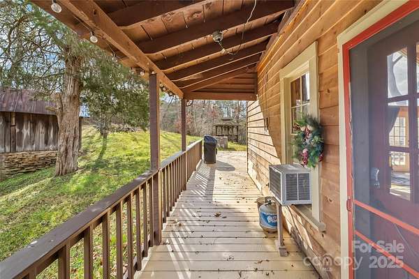 Discover the quintessential mountain cabin experience! Nestled in the peaceful farming community of Crabtree, this rustic, hand-hewn log cabin blends 90 years of history with plush modern comforts. Beyond its year-round accessibility, you'll enjoy sweeping, unobstructed mountain views in every season. This well-maintained retreat pairs antique charm-vaulted ceilings and a cozy wood-burning buck stove-with thoughtful updates such as propane heating, newer plumbing, and a tankless water heater. The open floor plan offers an inviting flow from living to dining and kitchen, with a comfortable bedroom and full bathroom with laundry on the main level. Upstairs, the loft provides a bonus sleeping area with some low-ceiling sections. Step outside to take in the panoramic scenery from the spacious deck, the newer 5-person hot tub, hammock, or gazebo swing. Gather around the fire pit for unforgettable mountain sunsets. Conveniently located just minutes to daily essentials in Waynesville, ~10 minutes to Lake Junaluska, and under 5 minutes by foot to the Pigeon River. An easy drive to Cherokee, the Blue Ridge Parkway, and Asheville. Previously and currently a successful vacation rental-and with all furnishings negotiable-this can be your turnkey income-producing property or your very own mountain escape. And... did we mention the views are incredible?