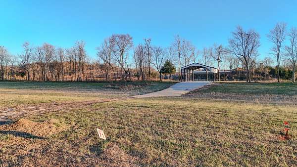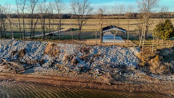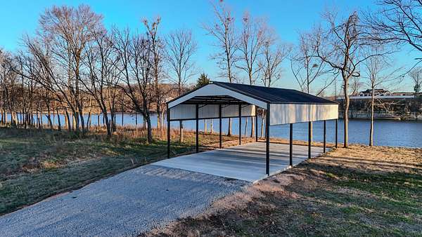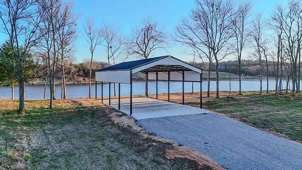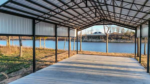 Lot 71 at Stewman Creek Landing is a 0.75 acre riverfront lot with direct access to the Tennessee River. The property includes a pavilion constructed with metal trusses on a concrete foundation, providing a covered outdoor space near the water.