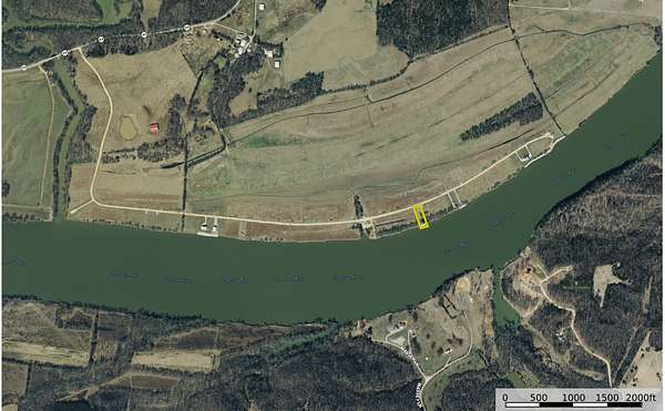 The lot's western orientation provides open views across the river and allows for visibility of sunsets over the Tennessee River. The manageable lot size supports residential or recreational use while keeping the river as the primary feature of the property.