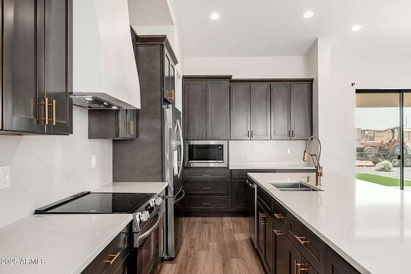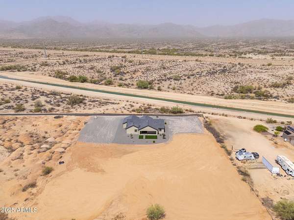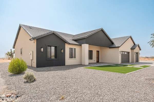 New 2024 custom home on 2 acres, Private Well worth 65k, with stunning, unobstructed views of the White Tank Mountains-luxury living with room to breathe! Tucked away on a semi-private road, this home offers the rare blend of seclusion and convenience-just minutes from shopping, dining, and freeway access, yet feels like your own desert retreat. Inside, you'll find an open-concept layout with quartz countertops, 42''soft-close cabinetry, Frigidaire Stainless appliances Every detail is thoughtfully designed-from the expansive great room to the oversized 3-car garage, perfect for trucks, toys, or trailers. No HOA, plenty of space for RVs, horses, or future expansion. Whether you're after peace and privacy or entertaining in style, this home checks every box.
