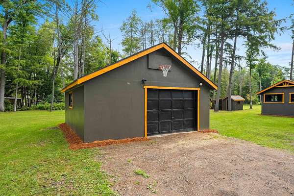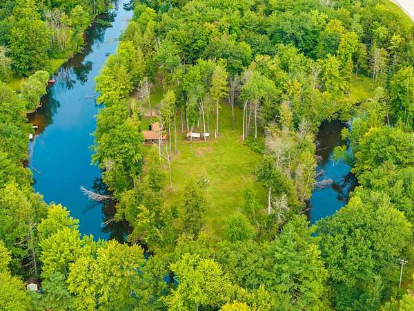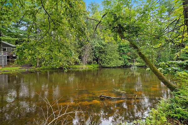 Unique 2 BR/1Ba cabin and property near the intersection of Hwys 32 and 64 surrounded on 3 sides by over 1000 ft of frontage on the Oconto River navigable by row boat,canoe,kayak. Situated in park like setting with gated entrance. Home can be utilized year round. Large open concept Living area with NFP-loads of windows. Recently upgraded with 200 amp service panel-mini/split Heat and AC unit- drop ceiling and insulation- new kitchen cabinets /sink/faucet and appliances-all new flooring- freshly painted thru-out inside of home and exterior of all buildings. Move in condition. Outbuildings include a 21x24 garage-storage building with fish cleaning station and outhouse for parties. Very close to numerous lakes- bars-and restaurants. Better hurry before this one is gone.