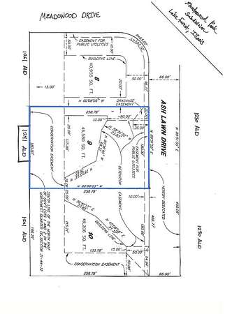 The last remaining vacant parcel in this historic subdivision is now available for purchase. The neighborhood is anchored by the exquisite historical home "Rookwoods," designed by noted architectural firm Pond & Pond at the end of the 19th century. The exclusive, 10 lot Meadowood Park Subdivision is conveniently located in central Lake Forest with easy access to every amenity available in Lake Forest. This vacant parcel is approximately 1.1 acres and suited for the construction of a home in approx. 4,500 square feet. The southern border of the lot is protected and enhanced with a conservation easement. An aerated pond is located on the front of the lot and will provide tranquil views for the next owner to enjoy. Additionally, there is close and convenient access to Lake Forest Open Lands's Mellody and Middlefork Farm Nature Preserves. Enjoy sweeping views of the rare, 100+ acre tallgrass savanna that is being preserved for the benefit of generations to come while taking advantage of the 4-mile trail and greenway. The Everett Elementary School is very highly rated and the favorite of many families in the community. Lake Forest High School has a nationally-known reputation for academic excellence! Many relocating families are drawn to Lake Forest because of this and the incredible offerings of extra-curricular activities which include a spectacular athletic department and emphasis on community service and involvement.