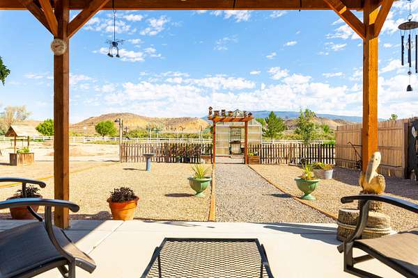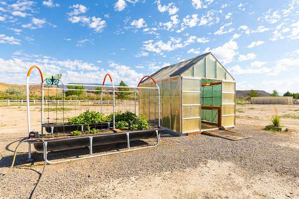 Set on over 2 acres of beautifully utilized land, this tasteful ranch-style manufactured home offers a rate combination of charm, functionality, and sweeping views in every direction. The property includes a large detached garage with multiple workspaces, greenhouse, garden beds and multiple pergolas-animals are welcome! The interior of the home is filled with natural light and thoughtfully designed features, including a stunning kitchen with a farmhouse sink, large pantry, and custom barista bar-perfect for your morning routine. The cozy fireplace anchors the open living space, while an additional family room provides flexibility for gathering or quiet evenings in. Whether you're enjoying the views from your window or tending to your land, this property offers the perfect blend of rural tranquility and modern comfort.