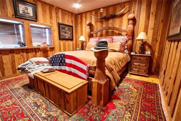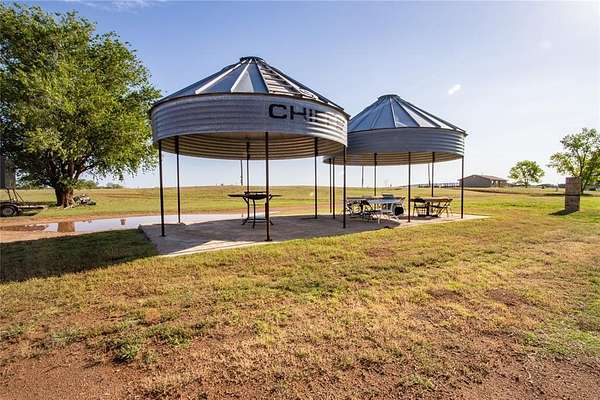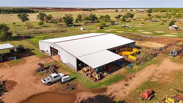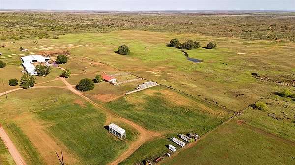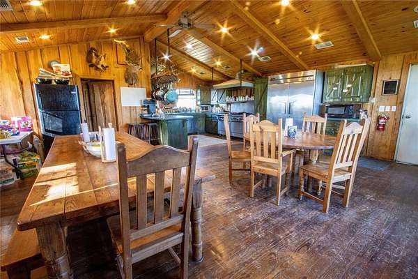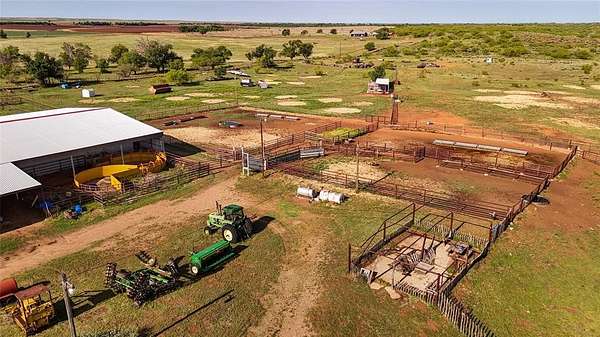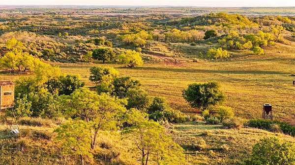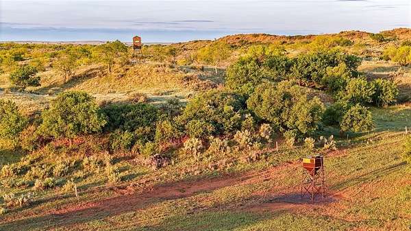 The Sandhill Ranch, located outside of Estelline, TX, covers 6,895 acres and features 4.5 miles of river frontage along the Prairie Dog Town Fork of the Red River. This place is truly a sportsman's paradise offering some of the best free range hunting for trophy mule deer, whitetail, quail, turkey, dove, and hogs. The terrain is perfect for horseback riding and off roading, and it comes with a lodge that sleeps 29 people, plus a 3 bedroom, 2 bath foreman's house. The terrain shifts dramatically across the property. You'll find some open sand dunes on the northwest side of the ranch near the river, but most of the ranch you will find hills that are covered in native grasses and good forage, ideal for both wildlife and cattle. The river flats and riverbed add another level of diversity that really makes this ranch stand out. The ranch is set up to handle major cattle, farming, and commercial hunting operations without missing a beat. Located 200 miles from the DFW Metroplex and 100 miles from Amarillo. 20 minutes away is the Childress Municipal Airport with a 5,949 ft runway. Sitting on top of the Seymour Aquifer, the ranch has 17 working water wells plus numerous surface tanks. The fencing is in great shape 19 miles of perimeter fence and over 16 miles of cross fencing. There's also a 2.5 mile cattle alley running from the headquarters to working pens in the bottom pasture. The foreman's or guest house has been recently remodeled and includes 3 bedrooms, 2 baths, and 2 living areas. A 7,600 SF workshop and barn comes with an office, 2 full bathrooms, tons of corrals and working pens, and a hydraulic chute. There's even a dedicated dog kennel area with 9 covered runs, all plumbed with water. Additional outbuildings include an 8,000 SF hay barn and a 1,800 SF equipment shed. The ranch is loaded with strategically placed hunting blinds, corn and protein deer feeders, quail feeders, and turkey feeders to support incredible hunting year-round.