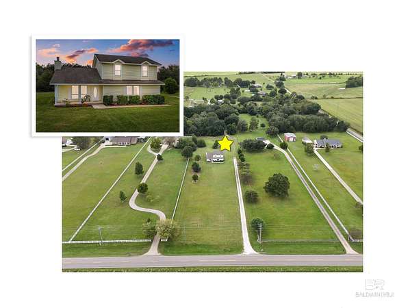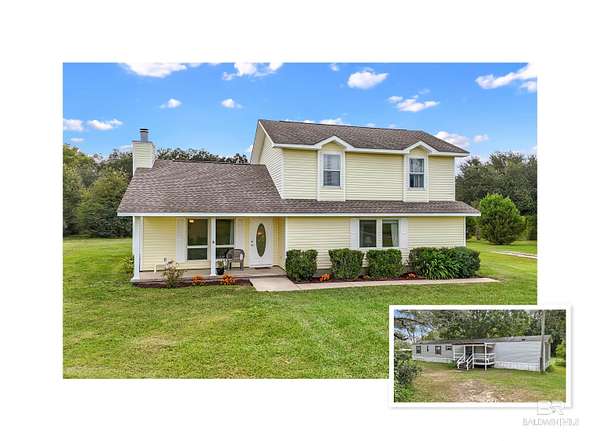 Absolutely stunning and custom built!!! Traditional farmhouse living with income or multi-family flexibility. This property features a 5-bedroom, 2-bath farmhouse on approximately 2 acres, plus a separate 4 bedroom/2 bath 1997 mobile home on aprox. 1.16 acres (ppin# 78544). Perfect for a family compound, rental income, multigenerational living, or hobby farm. Ac and roof are 2016. The owners have taken very good care of this property. The house has a large master bedroom downstairs and an additional bedroom downstairs as well. The other 3 bedrooms are upstairs with a balcony overlooking the stunning property. Every window throughout the home portrays the beauty of the countryside! Open concept layout from the kitchen to the dining room to the living room. An oversized laundry-room is attached the kitchen. Vaulted ceilings! This homestead has the best of country living with access to local amenities including fresh farmers markets and the ability to buy your meat directly from the farm. Publix, Winn Dixie, Walmart and Target are all 10-15 min away. Close to Pensacola, Foley, Gulf Shores and Orange beach. No tourism in Lillian, but so close to all the great aspects of this including the white sand beaches of Perdido Key within a 15 min drive. 2 miles from the Lillian Boat Launch. Great place to launch your boat to be in the Gulf or the Intercostal within 30 minutes or you can go up the quiet backwaters of Perdido River! Please allow 24 hour showing notice! TY! Buyer to verify all information during due diligence.