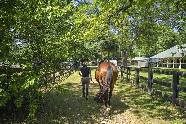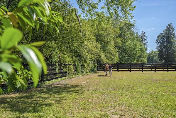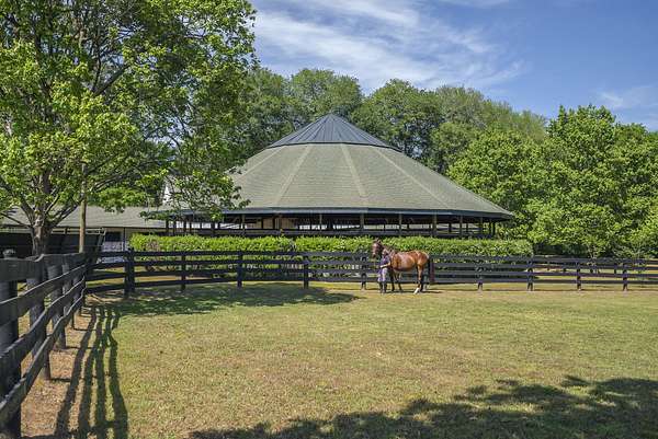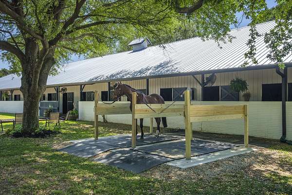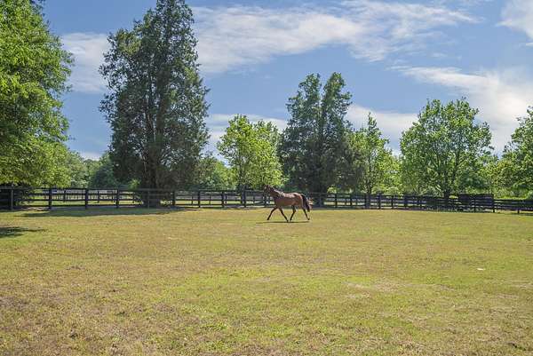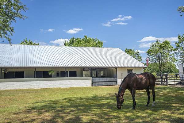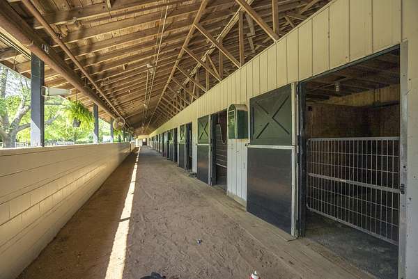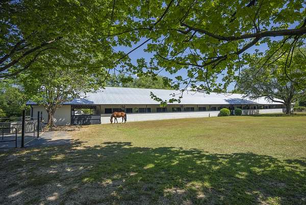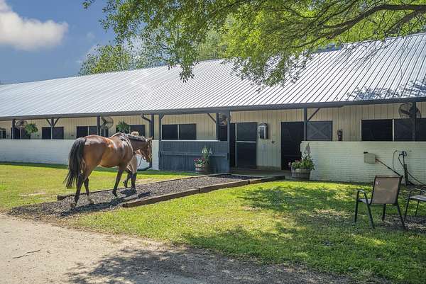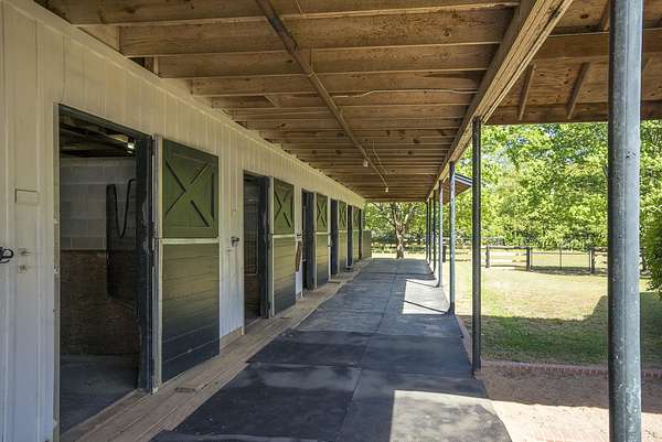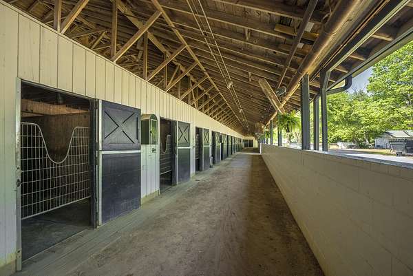 A Truly Singular and Exceptional Offering in Aiken's Horse District! Byerley Stable on Audubon offers direct access to the Aiken Training Track, Bruce's Field's top notch show facility and the sand/clay roads of the Historic Horse District that lead to the trails of Hitchcock Woods and polo at Whitney Field. This 3-acre property has two barns with 42 stalls in total. The main barn features 33 matted stalls, a dedicated feed room, air-conditioned tack room with 1/2 bath, new washer/dryer and heated/cooled office/lounge with 1/2 bath. Rich in history, this barn was originally built for Charles Englehard for his trainer, Mack Miller, and at one time stabled Paul Mellon's horses. It is known for being the first stable in Aiken with a fire protection system of which some components remain. Byerley Stable on Audubon also offers a separate 9-stall barn with a newly matted shed row aisle. The property also includes 4 wash stalls; a covered schooling/lunging area; metal round/breaking pen with new sand footing and recently renovated 2 bedroom/2 bath Grooms Quarters sold with furniture/furnishings. A nearby newly installed 'grill' patio is perfect for hosting an Asado after polo or a celebratory cook-out after a blue-ribbon day at the Horse Show! Many improvements include a New Roof on the 33-stall stable and on the Grooms Quarters (April 2024), plumbing upgrades & electrical upgrades including new conduit; commercial grade fans in main barn aisles; LED stall/aisle lights; new outlets for stall fans on one side & more. Grooms' quarters has been freshly renovated with new paint, new LVT wood-plank flooring in den and primary bedroom; new window ACs (3) and heating units; new bathroom vanities, fixtures, flooring, tiled showers & updated kitchen with new cabinets, laminate counters, sink/faucet & new refrigerator, stove, washer/dryer. A commercial grade icemaker for the barn is stored in the Grooms Quarters. Property has strong rental history and continued potential from the Grooms Quarters' rental as well as paddock and stall rentals during the training season and Horse Shows at Bruce's Field. The large field on the west side of Main Barn is a great place for hand-grazing, lunging and/or the addition of an arena; 2 additional paddocks and a dog run/pony paddock offer established grass and a shady perimeter for warmer days. Byerley Stable on Audubon has lots of flexibility and versatility for your personal enjoyment with your horses while it works for you! Call for full property details and to schedule an appointment to see this dynamic property in person!