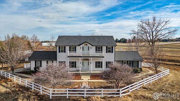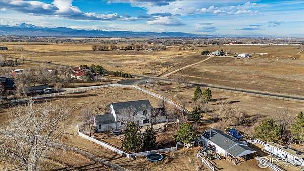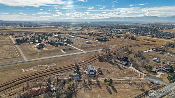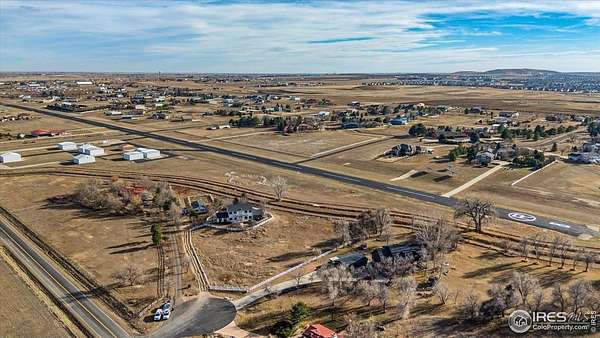 Incredible home on 2.27 acres, featuring amazing front range views of the mountains. Airpark property, perfect for pilots. Also great farm property with a perfect set up for horses. New Roof and paint in 2023. Features 10' ceilings, main level study, gas fireplace, and new carpet. Light, sunshine & views through every window. Kitchen with granite & stainless opens to huge beautiful dining room. The kitchen and dinning room open up to the beautiful entertainers backyard, with beautiful trees, runway views, newer hot tub, fireplace with bench seating, and outdoor kitchen. Master suite w/ 5 piece bath & unobstructed view of snow-capped peaks. Great horse set up w/ two-stall barn. In airpark and includes a 1/10 acre hangar site. Perfect country home yet just minutes to Old Town Erie cafes and restaurants and schools.