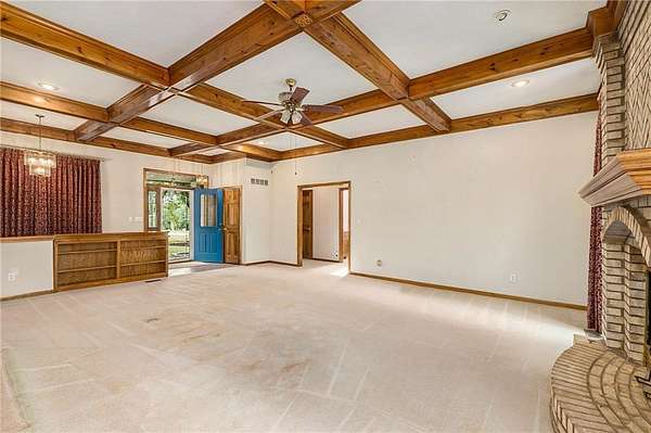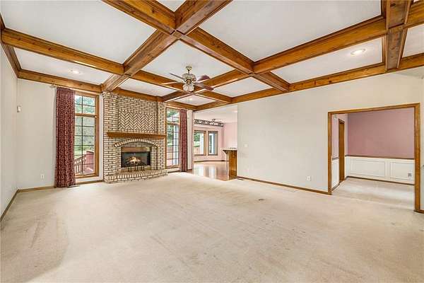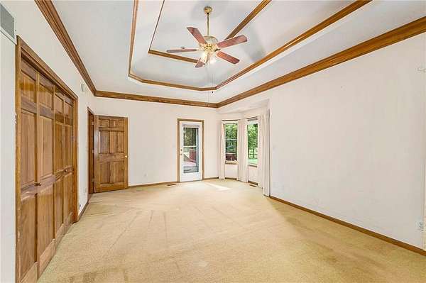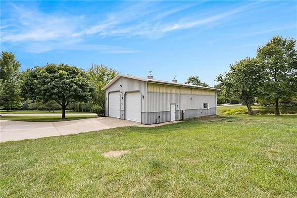 2.5 ACRES, HOLMES CREEK, KEARNEY SCHOOLS, 36X54 OUTBUILDING w/RV DOORS, SHARED POND, MATURE TREES, REVERSE 1.5!! HIGHLY MOTIVATED SELLER, BRING US AN OFFER!! Bring your vision and make this your own! GORGEOUS TREED LOT that shares a LARGE POND w/ neighbors. RELAX ON THE DECK & TAKE IN THE VIEWS! 3 car garage on main w/4th on LL. The SPACIOUS MAIN LEVEL features great room w/BEAMED CEILING, BRICK FIREPLACE & lots of windows for NATURAL LIGHT along w/ formal dining room or office. Kitchen features LOADS OF CUSTOM CABINETS, island, pantry, GAS COOKTOP, eating space and more! MAIN LEVEL PRIMARY ENSUITE has 2 closets, jetted tub, double vanity & separate shower. 2 secondary bedrooms, 2nd bath & laundry also on the main for convenience. LL is partially finished w/full bath & rec room area. SO MUCH SPACE to finish to your liking or use for storage. New roof in 2020. HURRY!!